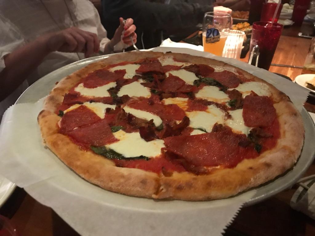 $12 - pepperoni pizza, medium size. Good crust, tangy sweet sauce. A good pizza.