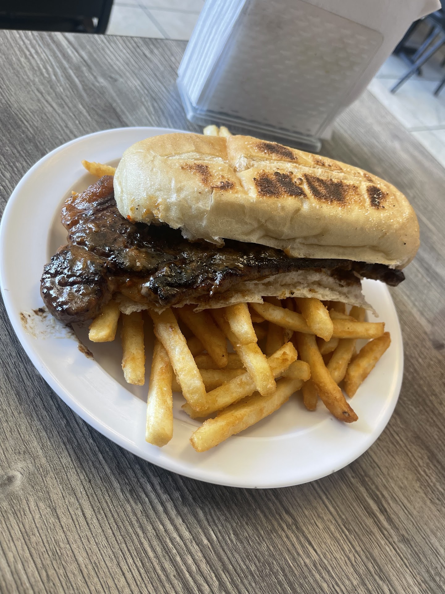 Went into this place just based off the fact that I didn’t know the area well and I quickly searched for food near me and found this place and only quickly looked at the menu and decided to try it. I’m very glad I did because this place is great! Very nice guy at the counter, not sure if he was the owner or not but very friendly. I got the steak sandwich and fries, and it’s always a good sign when they ask you how you want your steak cooked when you’re ordering it in sandwich form. Very very delicious, it’s definitely marinated and then there’s some kind of sauce they slather on, it’s the best around by miles. My only criticism is I wish they’d trim off the fat and gristle before serving, but that alone would not stop me from ordering it again (which I will be). Can’t wait to try their...