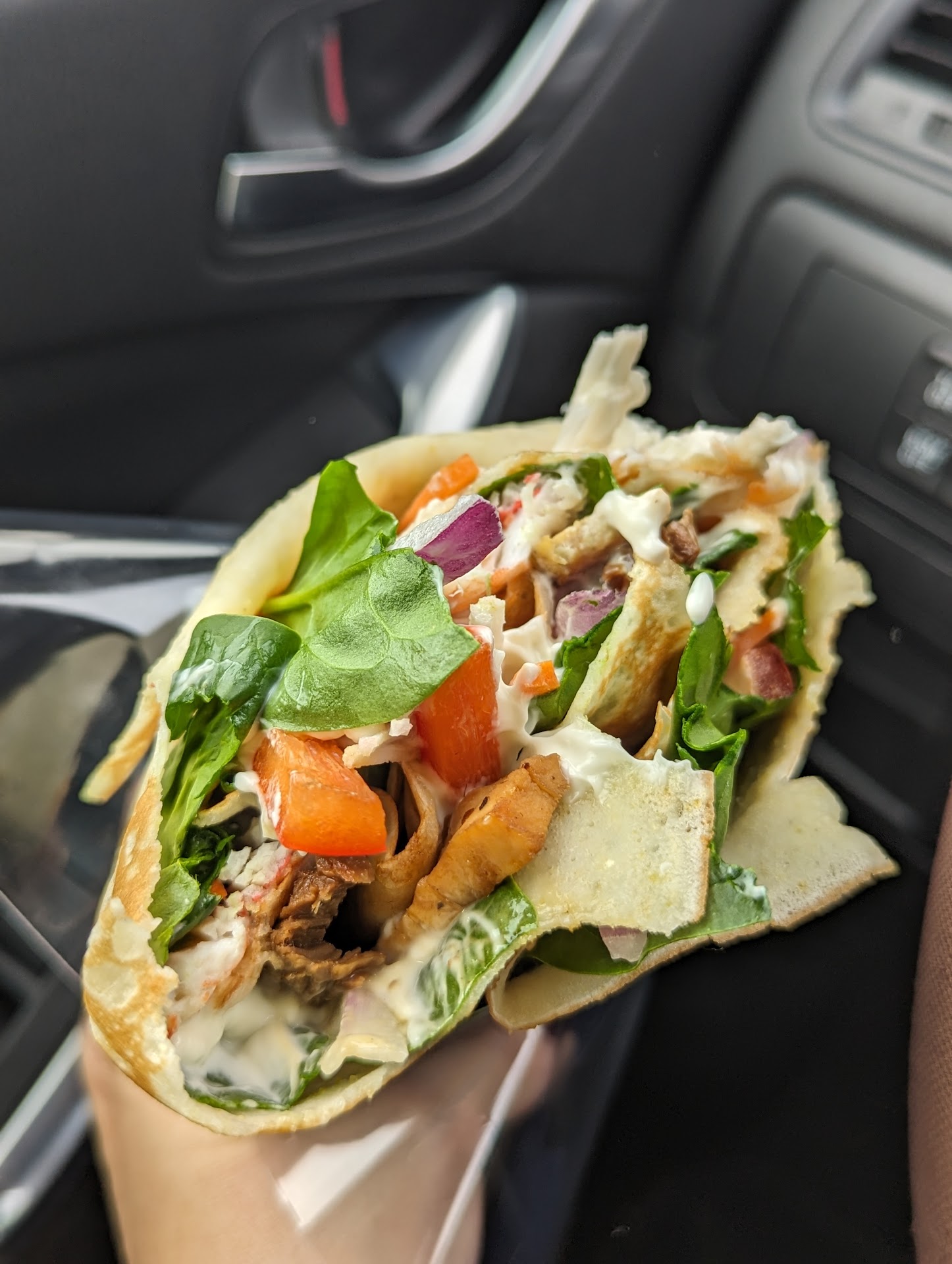 Read moreWish I had gone here sooner , this place is too good it like makes me want to sing with joy about how beautifully made their crepes and ice creme is. First off the crepes are all gluten free and like amazing . They have lunch dinner and dessert crepes. I also got vegan vanilla ice creme from them with lychee smashed into it and fresh blue Berry's, strawberries, coconut, and peanut butter on top which they made right in front of me fresh, my mouth waters just thinking about how light and fresh it was just excellent and addicting, I have to go back to this place asap. I got a chicken teriyaki crepe which i scoffed down and a crab crepe which was like a spicey crab salad inside the crepe. I think about going back there like almost every day and if I lived closer I...