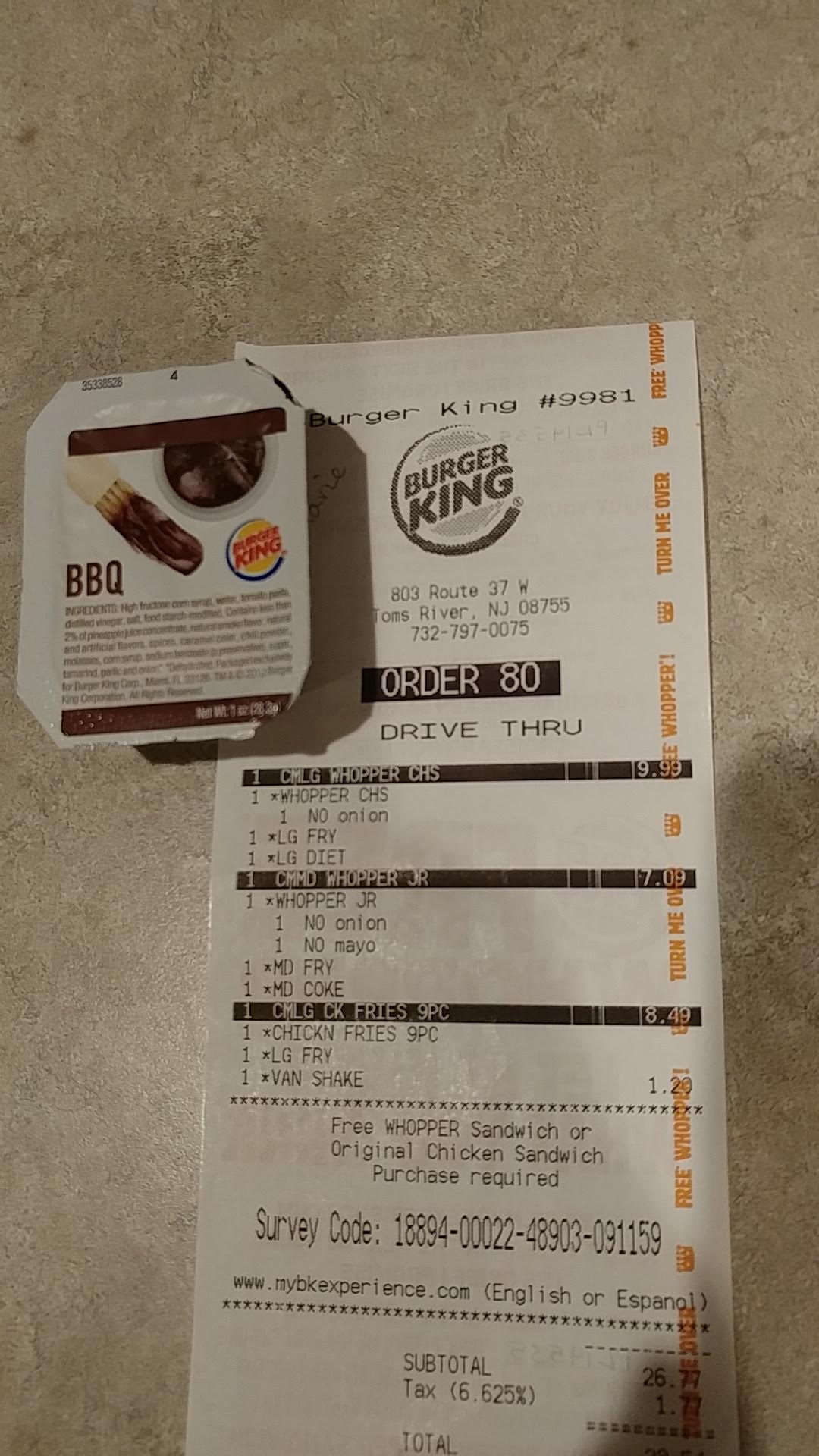 Last Saturday I went to the drive-up window of the Burger King on Rt 37 East in Toms River NJ. Now every now and again I have some issues with the service or the food but overall they were usually pretty good. However, last Saturday after driving up to the outside ordering speaker, I had to, first wait for 5 minutes before the man took my order. After taking my order, I drove up and there were 2 cars in front of me. I waited an additional 15 minutes to get up to the window to pick up my order. Once at the window, the man told me the total cost of my order and I handed, as I usually do, my debit card to pay for the order! I saw him say something to the manager and then handed my debit card back and said that they couldn't take credit cards at this time! Well... DARN!!! why didn't he tell me that when ordering or have a sign up at the ordering station! I didn't have any cash on hand and left! What a place!!!!! Never again will I visit this place..... Would have understood if I was given the information about the credit cards as I was ordering or saw a sign that they couldn't take credit orders temporarily!!!! I will never visit that Burger King again. I will go 2 miles up RT 37 to the West one if I decided to visit Burger Kings at...