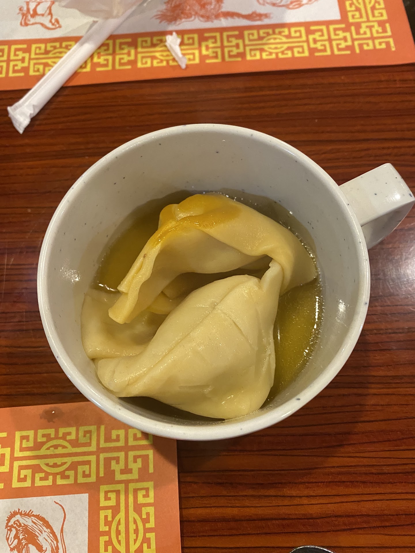 4 soups.. mushroom/tofu; new-england clam, egg-drop, and wanton (fresh scallions to add) - also great dumplings.