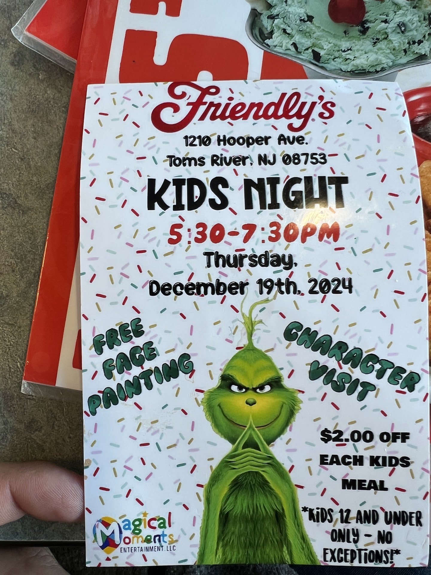 Read moreI'm a few weeks late posting but I need to brag about Renay. This girl, let me tell you, she made not only my night, but my little sister's. It was her 7th birthday and our tradition is Friendly's dinner. I am thankful NJ allows indoor dining so we could have this experience. I called ahead to make sure seating was available and Renay delightfully answered the phone and invited us in as there were tables available. She has such a bright and friendly personality, my sister Julianna had hardly any shyness about saying her own drink and food order. We both requested cotton candy sodas and she wanted one with gummy sharks. Unfortunately the sharks were a seasonal item the last time we were there but she was happy to substitute gummy bears for us. đ she was very attentive to her guests and showed incredible patience when dealing with a difficult customer a few tables over. I made mention to my sister how well she handled the situation and how professional she was. She is a mom herself and when she heard it was Julianna's birthday she wanted so much to continue the tradition of the birthday celebration with the candle and singing to make the experience special for us. It was only her and one other girl working that night but they came out singing and clapping and presented the candle lit ice cream sundae. Julianna was so happy and talked about it all night. They haven't had a birthday in there since all this covid stuff started and It was incredibly thoughtful and special that with their limited staff she still made it happen. Thank you so much Renay....