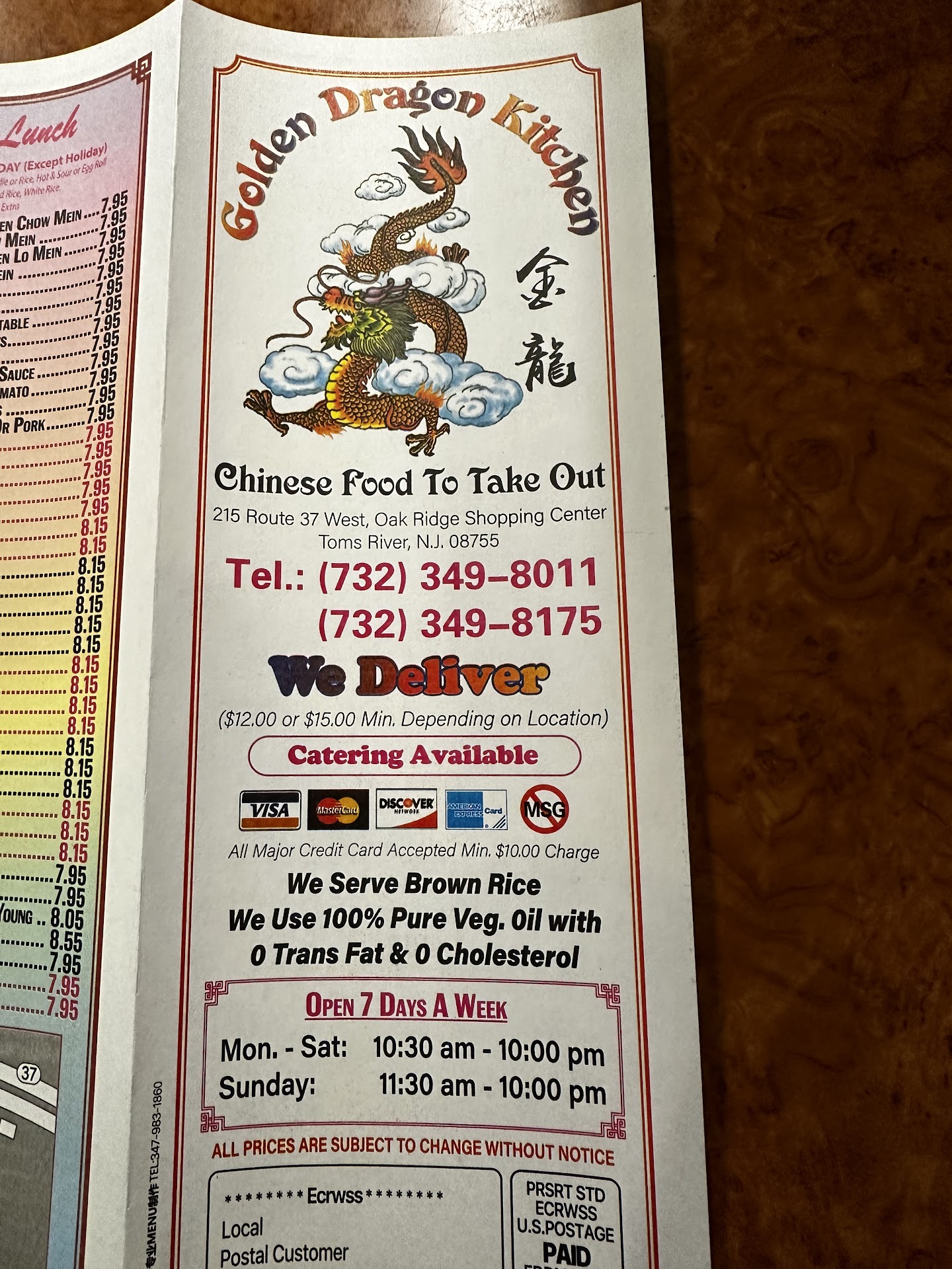 They lose a star because they won’t carry the real Chinese hot mustard as a condiment option.