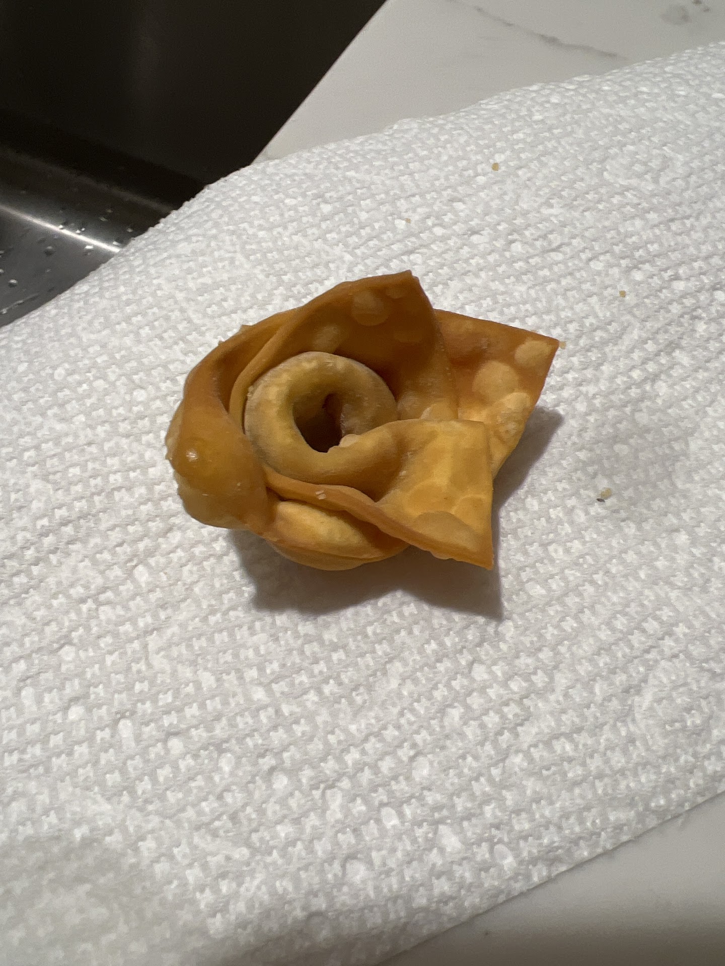 The egg roll felt like rubber and was very skimpy. It also had an awkward taste to it. Biting into it was the worst - imagine trying to pull rubber from rubber.