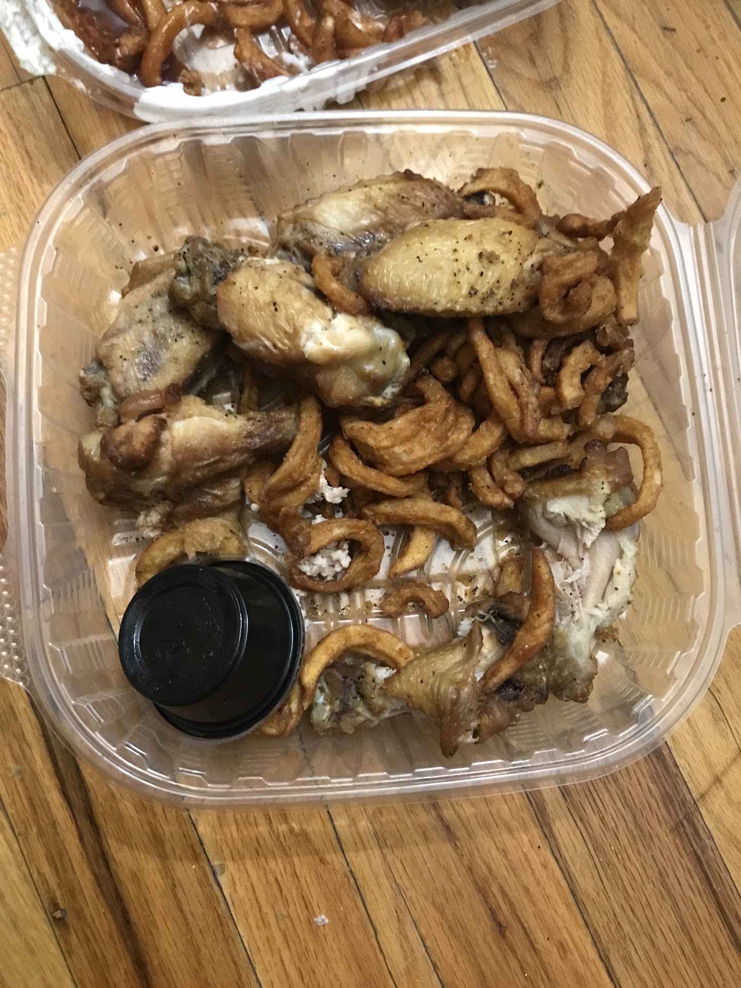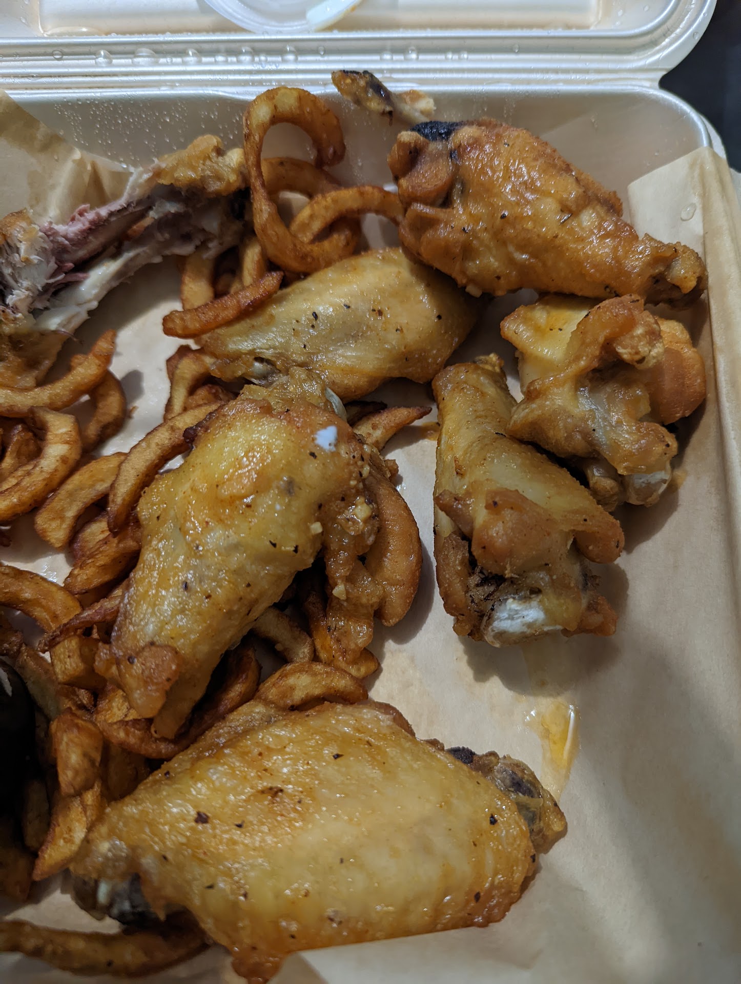 Read moreTruthfully we got 4 wings, the South west Cajun bbq dry rub was NOT enough rub they were basically naked & the boxes weren’t labeled so it was hard to know what wings were which. However, my boyfriend and I also got Apple BBQ, Honey Chipotle, & Spicy Pineapple Teriyaki AND LET ME SAY WOW! Delicious!! I’m giving 5 stars because the prices were amazing , sauces were delicious & every box (4boxs we got) all had fries it was a literal 4 person meal for 30$ which we didn’t realize because of the price...