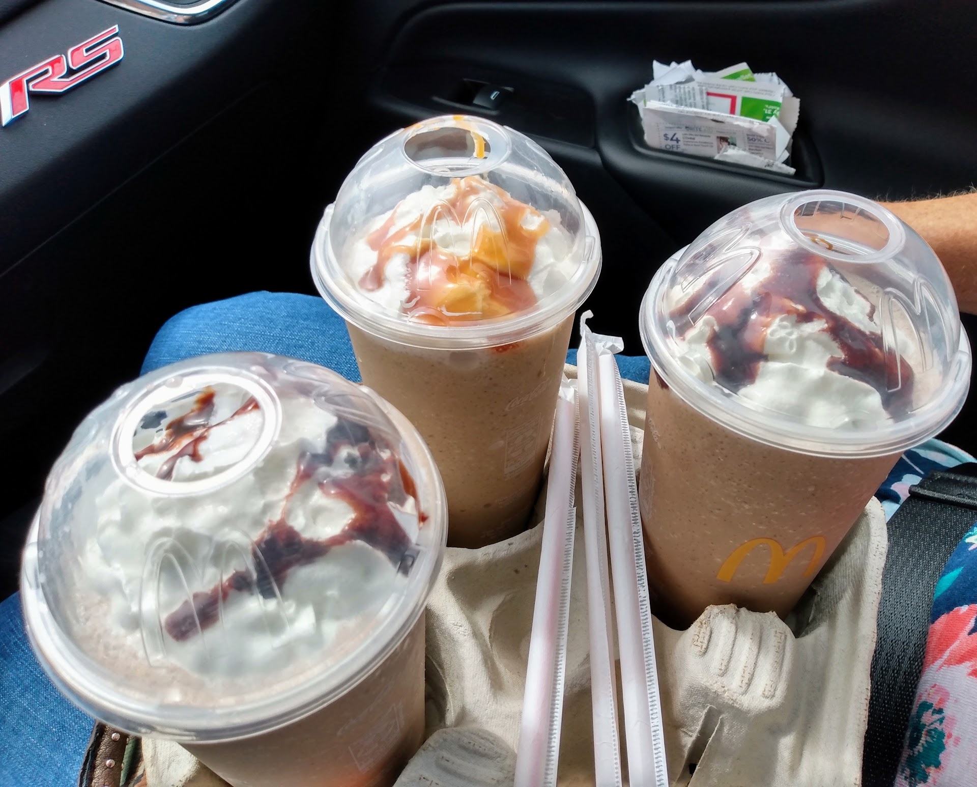 Stopped by on the way home. Big Macs, fries and a mocha frappe. The drive thru had a long line, but it went extremely fast. I used my bogo coupon for a free Big Mac, too. Everything was great. It always is at this location. The frappes are around the same price. However, they are definitely smaller. The large now appears to be the old medium size. Not happy with that. The most recent visit yesterday, we were in the drive thru. Ordered two mocha and one caramel frappes. They tasted great, but they didn't fill the whipped cream. Very disappointing. I had to take a few pics and post it. You tell me. My most recent visit today. Since it was hot out, I was in the mood for a mocha frappe. We ordered 2 large. When we got them there was no whipped cream on them at all and a flat lid on them. After mentioning the missing whipped cream, they said they were out of it. I said you charged me for it. Not only that, I swear they're even smaller than the last time I remember thinking they shrunk. I'm positive they're the old medium size of not smaller. I guess I understand it, though. These last two years have been some unfortunate times were living in. This is what it means when they say elections have...