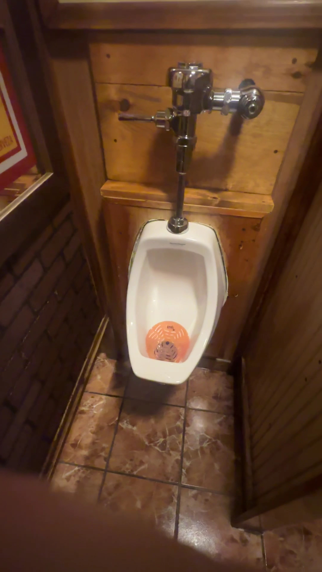 I also have the men’s room here on video, that was sadly heavy uterine smell, as small as it is I still think they could keep us better smelling bathroom, but it was clean. I didn’t see any stains anywhere which is a thumbs up but they need better ventilation or some good deodorants. . It is very tiny as a galley style men’s room. Did not see a lock on the door, but it did have a partition where no one could actually see you at the urinal just FYI.