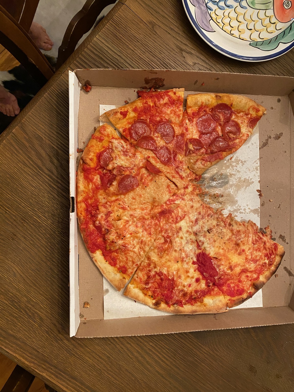 Read moreWould give it 0 stars if I could. I paid almost $50 for a pepperoni pie and a pie with half olive. After an hour it hadn't arrived, I called to check they said my order left 10 mins ago. I live about 7 mins from the restaurant. 15 minutes later my husband calls and is told it left 10 mins ago. I ordered at 6:24, 2 cold pizzas show up at just before 8pm. When I call to complain about the pizza being cold they offer 10% off my next order, when I say I will never be ordering from them again they offer $10 back. So I have paid for pizza that I have to reheat and honestly still isn't good. Let me be clear I get that places get busy and if they had been honest about not being able to deliver the pizza we would have gone to pick it up, but instead they lied repeatedly saying that it had left for delivery knowing that it hadn't. When it got here you could tell it had been sitting. I'm pissed because I like to support local restaurants but I will never give this place another dime...