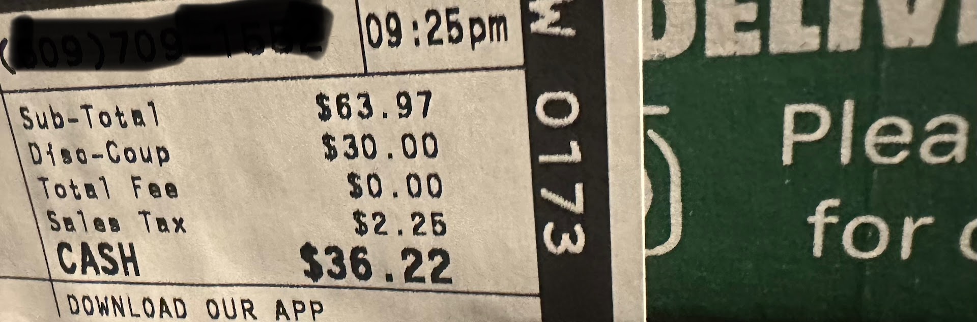 Read moreI ordered with Grubhub, I ordered at 11:02 And the eta of my food was 11:55 , ok I give 20mins tolerable late time , at about 12:55 I started calling the restaurant to check on the status, I noticed they close at 1:10 , I called 3 times to check on my order, nobody picked up , I left instructions with my order, “please call if any problems or if at door “ with my number , no call ever came , I think they just never made my food , and took my money , if you order from here don’t expect remotely warm food , mines probably in the drivers stomach or on the counter, 2 hours and...