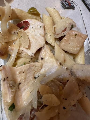 Read moreJust left there. Used the coupon for the 2 dinners for $28.99- we ordered the chicken Marsala and chicken Murphy. Both very under seasoned. Marsala needed salt and more Marsala wine. Murphy needed salt and more cherry pepper juice. Both very blah flavor wise. As for the chicken, extremely tough. Looking at it almost looks like they boiled it and then maybe threw it in the pan to make the order. No color from the flour and oil in a hot pan that normally happens when you cook the chicken for a Murphy or Marsala. Chicken was also tough to chew but also tough to cut with a knife and super dry. We ended up wrapping the food and taking it home. The picture is of the Murphy. We don’t keep take out in plastic or tin/foil so we transfer everything to glass containers. Marsala I didn’t get a pic. Washed the chicken off for the pup. We traveled 20 minutes to give it a try and...