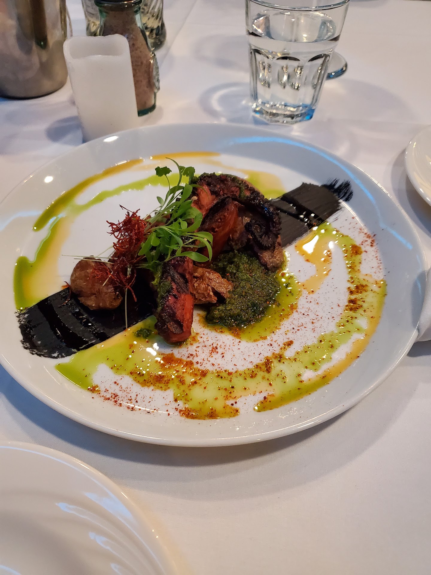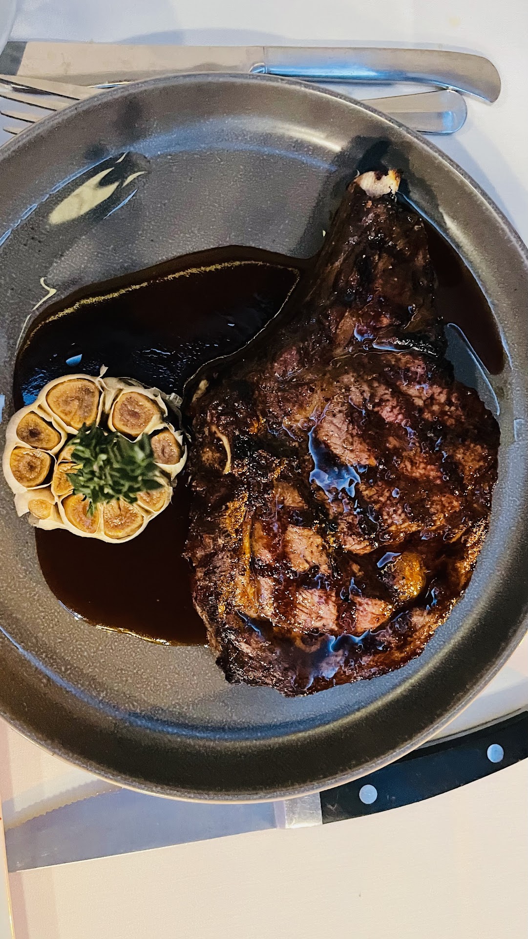 The food was exceptional. We started with mouthwatering appetizers—a beautifully curated charcuterie board, creamy ricotta crostinis, and thick-cut bacon that was rich and savory. For our main course, we all ordered the bone-in ribeye, sourced from Pat LaFrieda Steaks, and it was melt-in-your-mouth amazing. Cooked to perfection, every bite was tender, juicy, and packed with flavor.