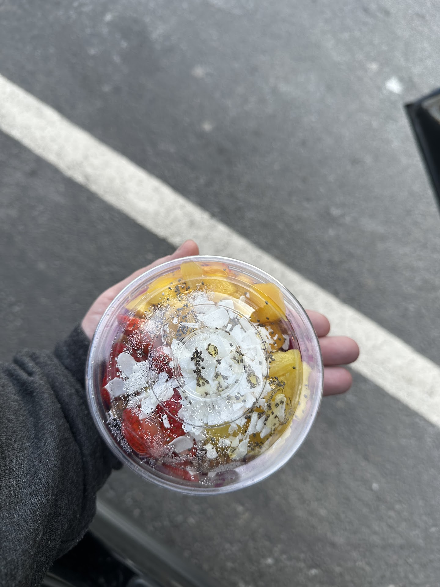 FOOD - the quality was bad. The base of the bowl tasted like the supermarket frozen bowls and was icey. The fruit was definitely NOT FRESH fruit it was out of a jar and there was barely any granola. The smoothie was trash.