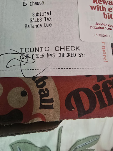 Read moreThe pizza was fine when we got it, but somehow an entire pizza was missing. When my husband went to pick it up and noticed, he ordered the pizza expecting to pay 6.50 like we did for all the other 2 topping medium pizzas. When she gave him the total it was 18.+ dollars and made sure it was the correct pizza. He was surprised at the price but didn't want to wait any longer and just paid and took the pizza. Here's my question, does anyone pay full price for pizza anymore? I know I don't. Ever. It's always on sale somewhere. I realize my husband should have said something rather than just paying and waiting till he gets home to say anything, but if you were the cashier, wouldn't common sense tell you to ring it up the same way the others were ordered? Or at least double check before ordering what has got to be the most expensive pizza at pizza hut? And to top it all off, we ended up tossing it out because it had bbq sauce instead pizza sauce and it has additional toppings we didn't want and don't eat. Clearly it was some kind of specialty pizza, but it was a pizza we didn't order, didn't want and it cost nearly as much as it did for the rest of our order for our family of 5. It's left a sour taste in my mouth so we definitely won't be back. I gave them 2 stars because despite what I feel is dishonest, the...