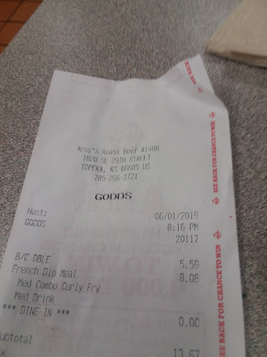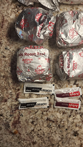 Ā Ā Ā Read moreI walk in to order inside and not one person greets me or the other patron who entered on the opposite side about 30 seconds after me. I and the other patron stand up at the counter for about 3 minutes before a girl finally acknowledges us and begins taking our orders. She wasn't the happiest or friendliest of people to be working a customer interactive based job. I place my order and get it fairly quick when another girl comes straight in the door after smoking and began handling food without washing her hands. Lucky the other girl handled my food, but it still made me question the cleanliness of the restaurant. Got the food home and opened the wrappers to a huge mess of thrown together without a sense of quality roast beef and cheddar sandwiches, if you want to call them that. All I have with this follow up is the next time I have a craving for Arbys, I will drive to the other side of town to order before I'll ever go to this...