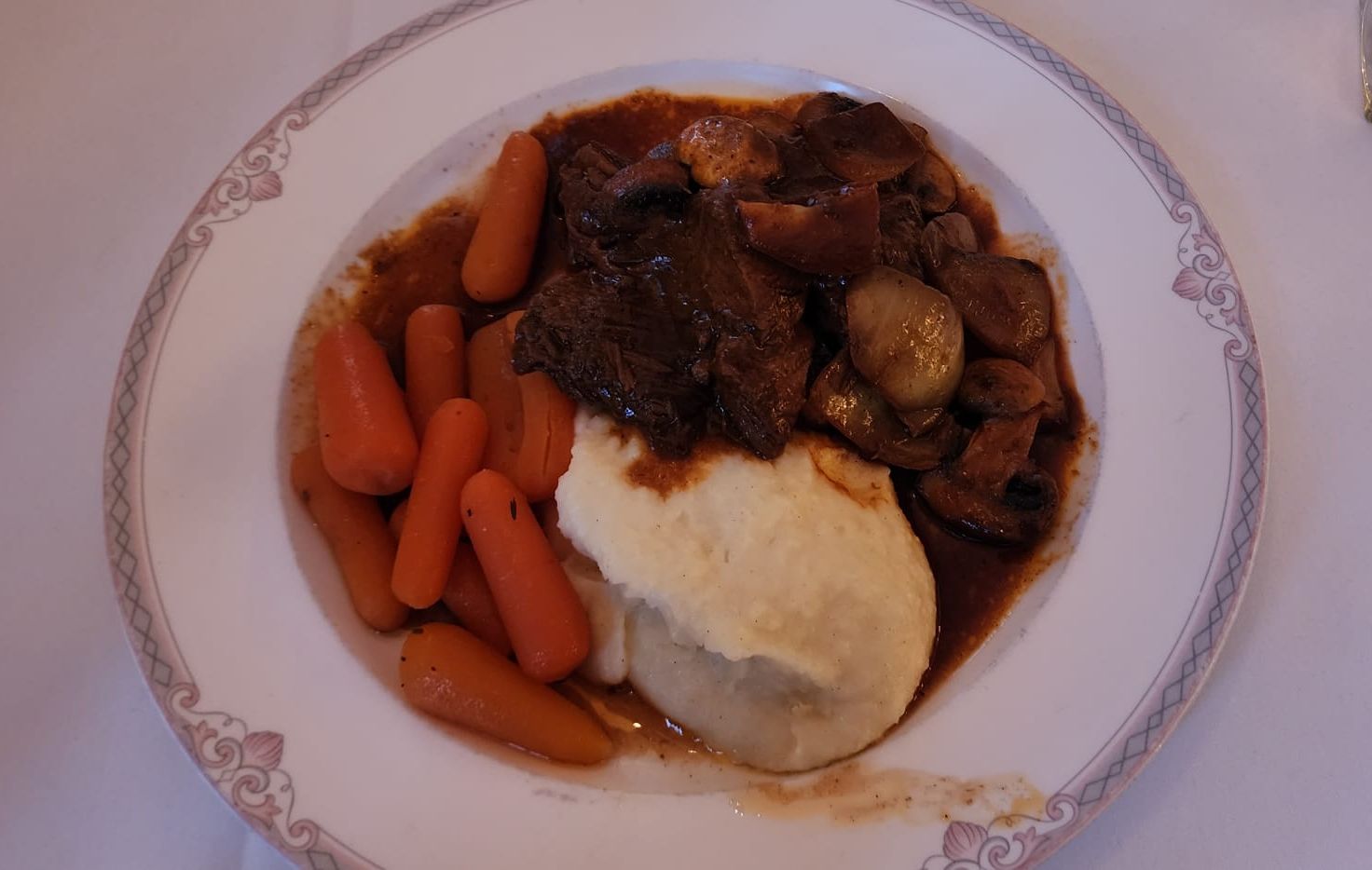 Read moreFinally decided to try this restaurant. Wish we hadn't. The food was below par for French cuisine. The wait staff was pleasant enough and the atmosphere was quaint if a bit dated. Dishes ordered: appetizers crab cake and scallops. Crab cake was ok but lacked some flavor. Scallops were very small as if they'd been halved before cooking. Decent flavor though. Main course salmon in butter sauce with mashed potatoes and candied carrots & braised beef short ribs same sides. Presentation was alright... both mashed potatoes were horribly prepared. Waitress stated the chef was new and poured the cream way too fast. Very runny and lacked any flavors I could even taste. The candied carrots were not candied just boiled with a pinch of sugar. Main dishes: salmon was cooked properly but lacked any flavor other than butter we could detect. The braised short ribs were in an overly scorched in red wine sauce that was not seasoned well. Two peices of ribs were also a bit tougher than the others. Waitress gave us a complimentary plate of shrimp and mushrooms and dessert as well trying to make up for the meal. Those were actually good. Overall I'd say new chef hasn't quite got the hang of it just yet or had a very bad night. Do not recommend personally. Bill was...