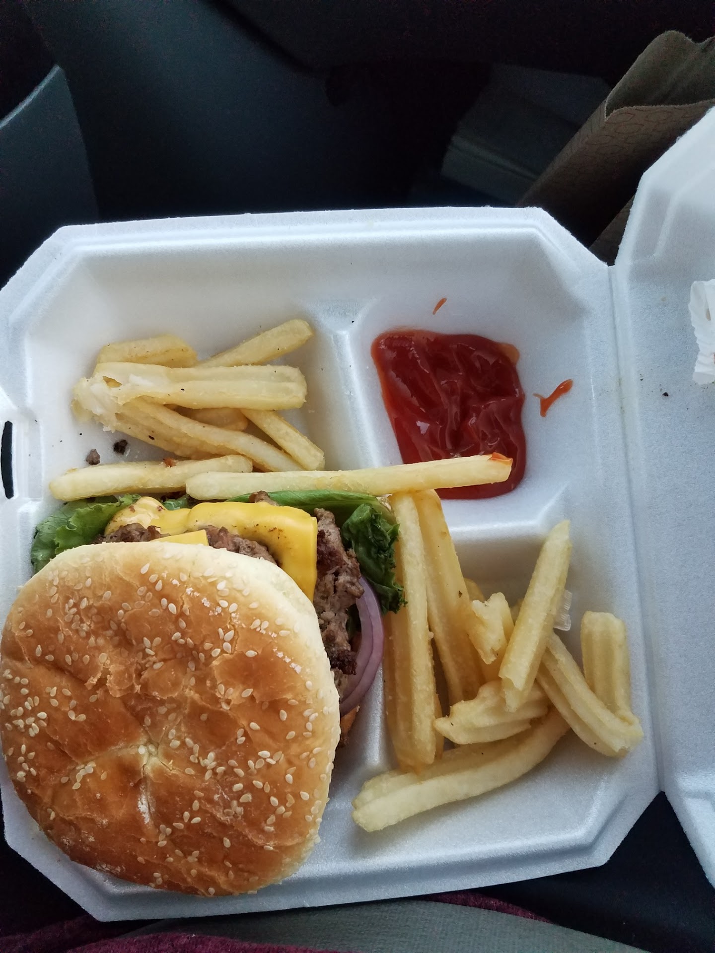 The food fell short. I had chicken strip meal and my husband had chicken fried chicken. Everything else was okay but the fried chicken parts were overcooked and lightly burned. Seemed that the fryer may have been set a bit high or they just accidently got left in too long.