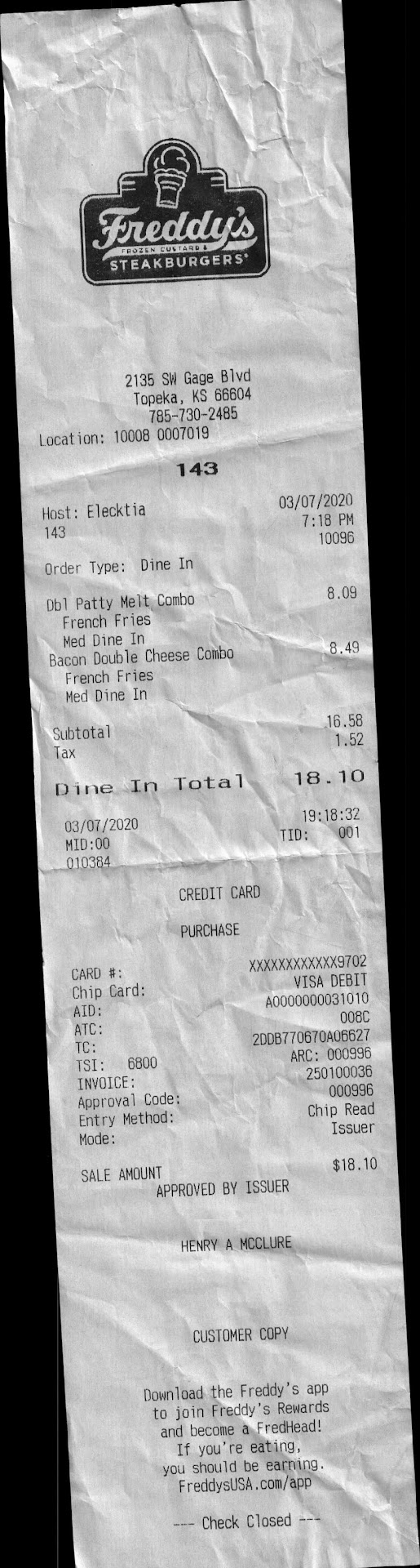 1-7-21 I went to Freddy's last night and I had a different experience than the one I had a few months ago. Taylor (I believe that was the manager) and Melissa were great! They were very friendly even when I requested for them to wear gloves, they complied with no problems and no attitude. From this experience I would change my...