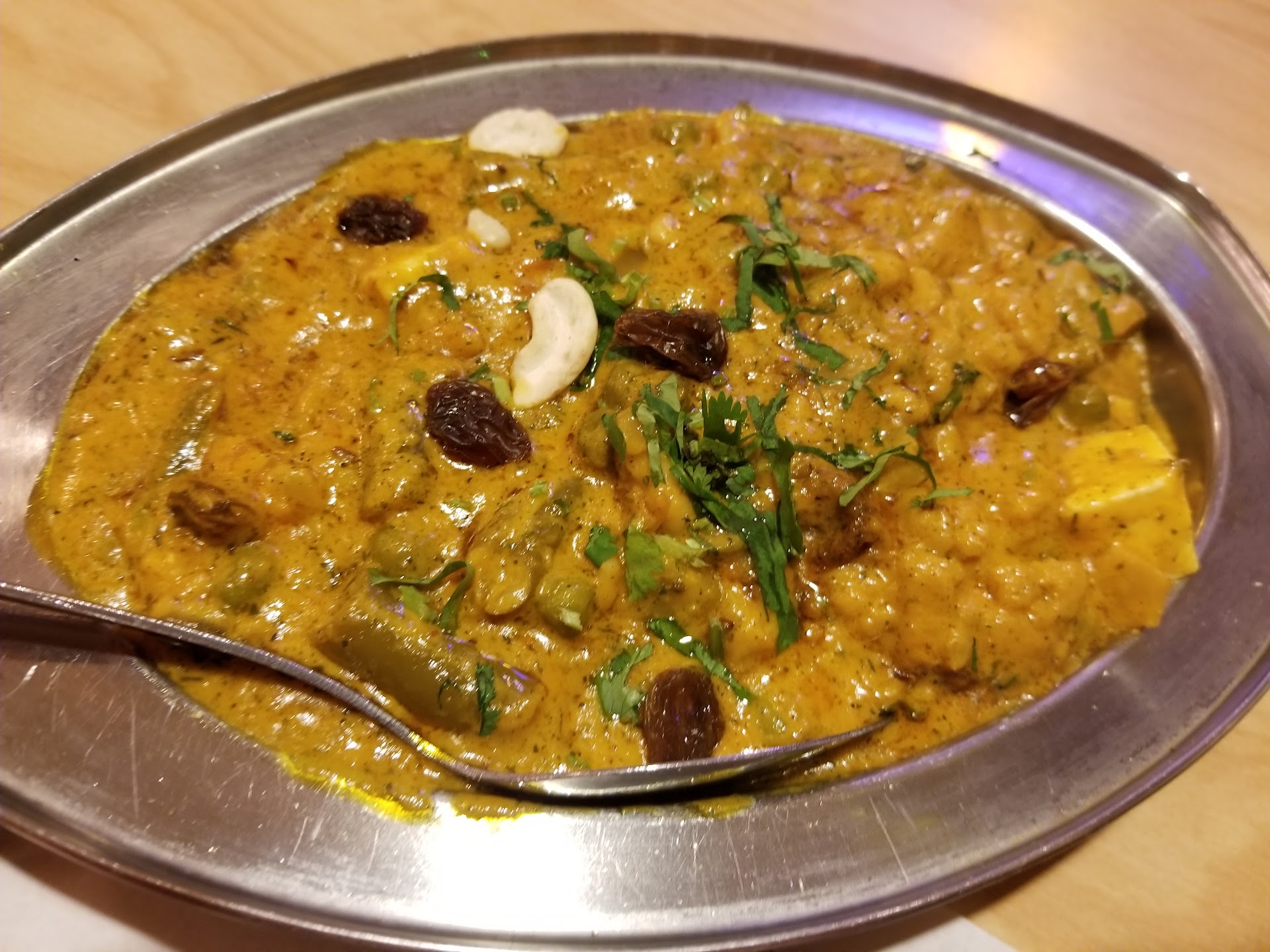 People have mentioned this is a small buffet, but didn't signify strongly enough how limited their selection is. They only serve ten items, two of which are Indian food essentials; naan bread and rice. Those are also cheap stomach fillers. Of the remaining items, four have meat in them. Although they serve beef, lamb, and seafood dishes, the only meat served is chicken. Even cheap buffets tend to have more variety than that. They're not really showcasing a wide range of their best fare.