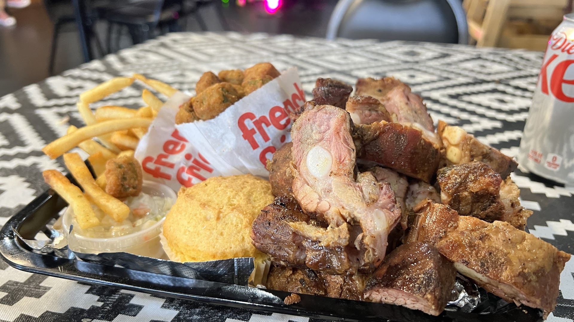 ย ย ย Read moreUnfortunately, I'm not a huge fan yet. The restaurant was not very clean. the floor looked like it had been recently painted and was extremely tacky to walk on. Tables dirty, bathrooms dirty. Only plastic wear available for sit down, very flimsy.. At 530pm, they were already out of wings and baked beans. So maybe those are the top items there. We ordered ribs, hot links, and pulled pork dinners. Sides were okra, fries, coleslaw, dirty rice, and the corn. Ribs and the okra were the high points of the meal. they both had good flavor, but the house bbq sauce was horrible. Pulled pork was pretty good, but again, the sauce did not pair well flavor wise. The hot link was very bland and mushy. Coleslaw was in a tiny to go cup and was room temp. Probably 80 to 85 degrees inside as the AC was struggling. Dirty rice was ok but very mushy/over cooked. The corn side was terrible in taste texture and visual. The children behind the counter running the register were also serving the tables. Im guessing family business. All for that! They are learning, im sure, and were nice. I did leave them a tip. Hopefully there are some improvements coming. Unsure how long its...