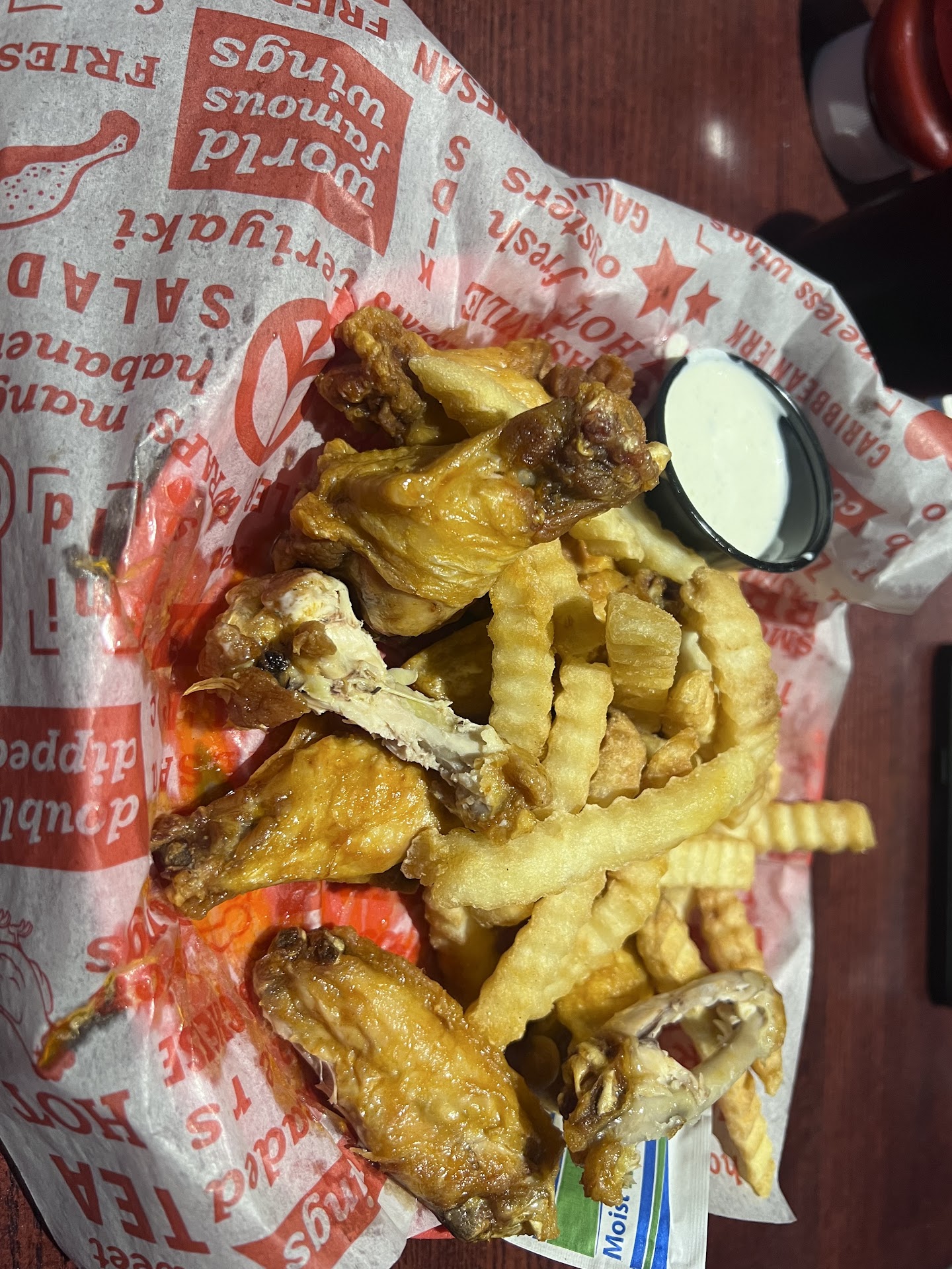 The food was comped but I wasn’t paying for these frozen wings either way!!! And crunchy outside fries and frozen inside.