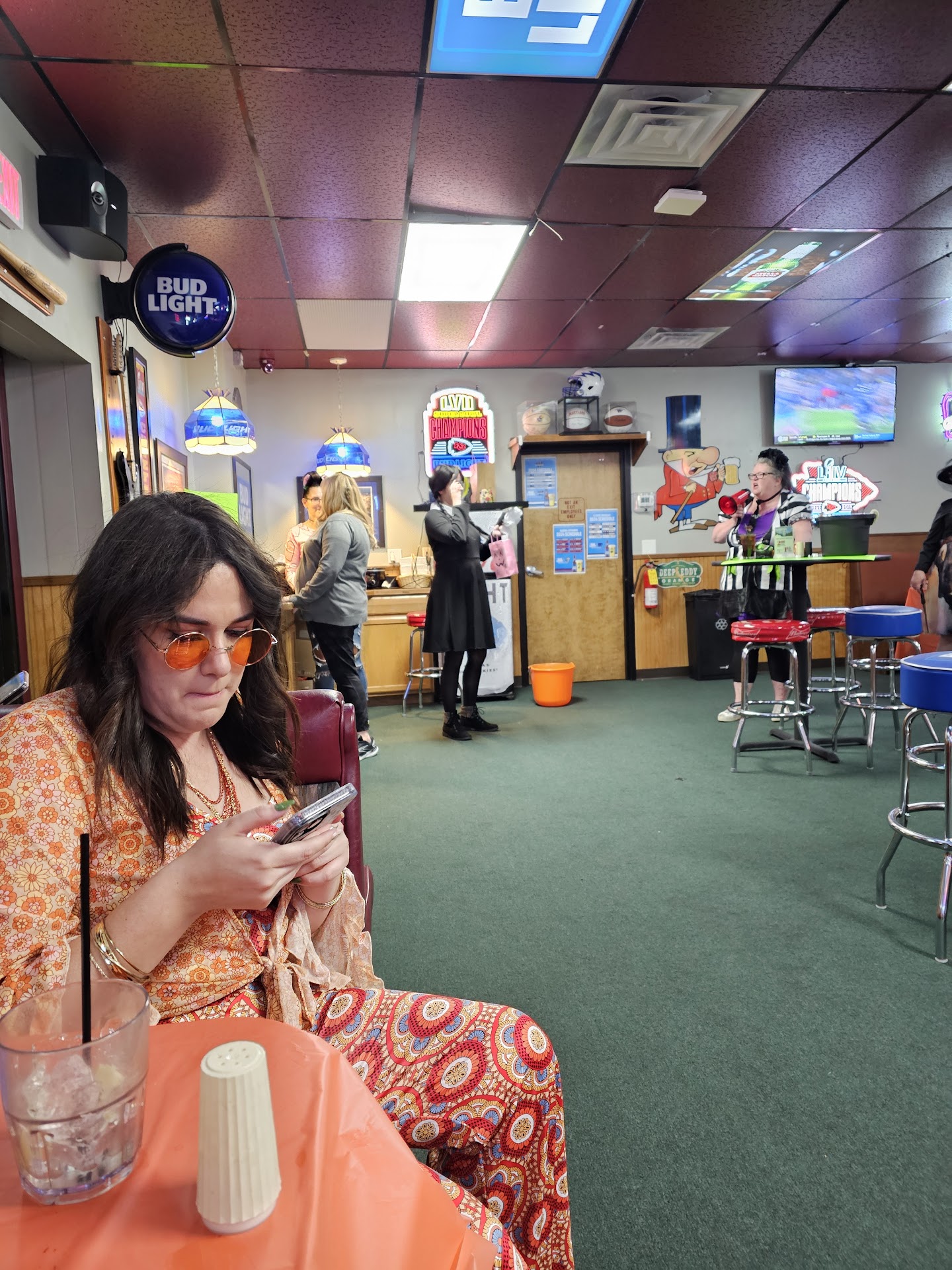 As an out of town visitor the description was exactly what I was looking for, a great local sports bar to watch the Thursday night NFL game. When I got there the game was on plenty of TV's with available seating, almost perfect. The table service was VERY slow. The waitress was more into eating her snack than waiting on tables. Here is the real kicker, with 2 minutes left in the game with the outcome on the line, the DJ fired up the DJ booth and turned the volume off on the game for Karaoke Night. You think they could have waited a few more minutes on the music until the game was over. Very disappointed and with only 2 minutes to go, there was not enough time to relocate or pick another place. Not "REALLY" a sports bar.... Typical Dive bar with bad service that happens to have a lot of TV's...They should drop the "Sports"...