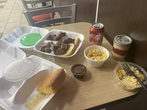 Food: We ordered one pound of rib tips and one pound of burnt ends. We ordered mac&cheese, baked beans, cheesy corn, and cheesy potatoes for sides. The burnt ends were kinda hit and miss. Some were good, but some were very tough hard to even chew. Overall, they were smoked nicely with good flavor. The rib tips were wonderful. (My personal favorite) The sides were not what I expected and were quite unique. The flavor was great, but you would think they would be larger when ordering them with a pound of meat. (Not nearly enough for the 4 people I was feeding.) (I would recommend doubling up on the sides if you're in a similar situation.)