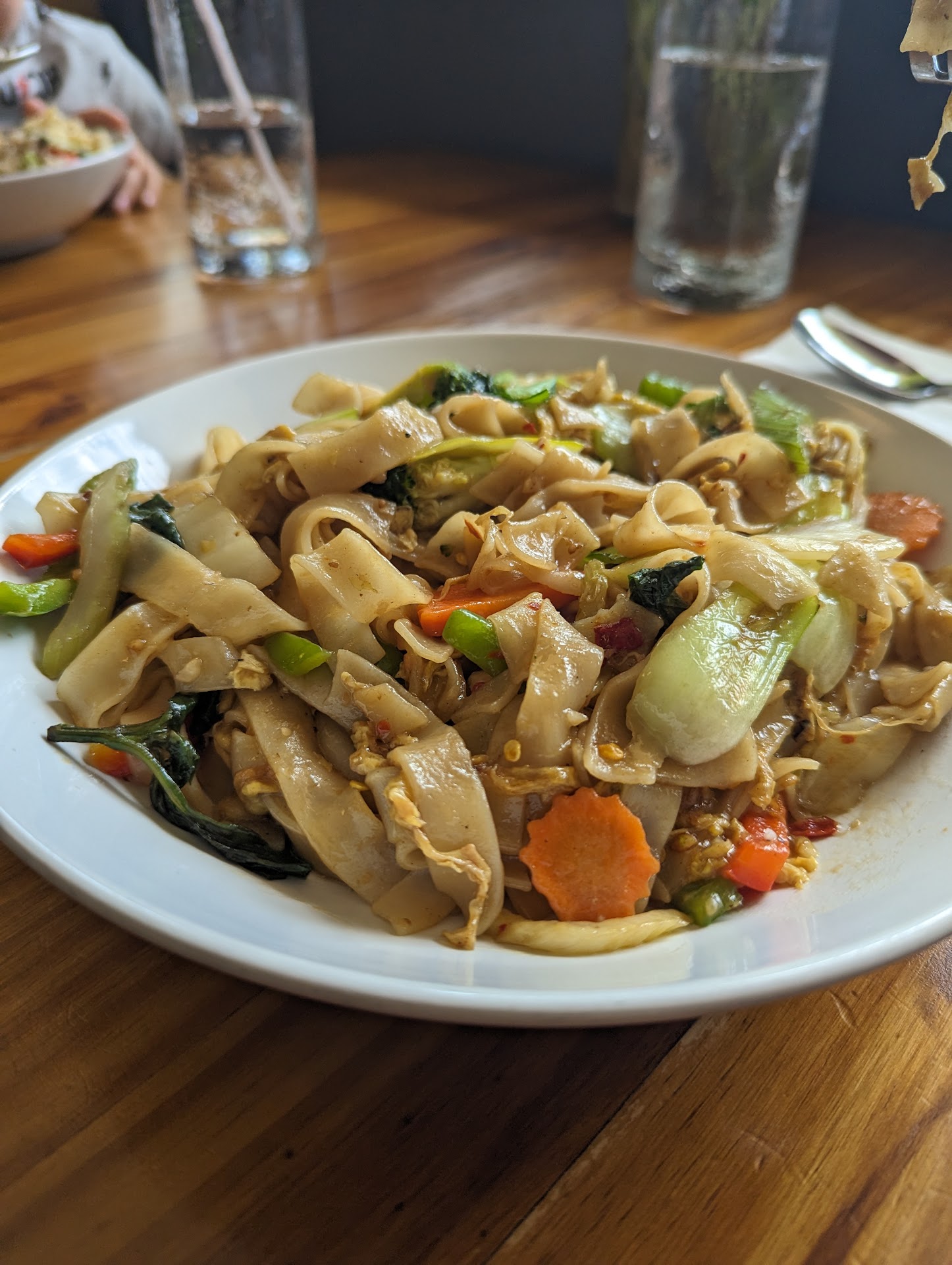 Read moreMy first time visiting, I was looking for some papaya salad, sticky rice, and chicken wings. They only have sticky rice. I was surprised to see Pho as a special, ended up ordering it, glad they gave options on level of hotness, it came out to my liking. As for the Pho, it didn't taste like the authentic pho I usually have in Lawrence or Kansas City, I was looking for the star anise. Cinnamon, clove profile in the broth, it tasted more like Tom yum. Not bad, but I was looking for pho flavors, we ordered the sticky rice with mango, oh my, that was very good, the Thai tea was also creamy and tasty. Service was slow, it wasn't busy, nonetheless it was a good experience will be back to try...