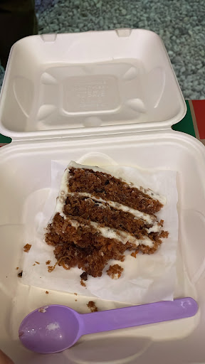 But then I ordered a slice of carrot cake to go. I didn’t think to ask about the price of desserts, which aren’t listed on the menu or the case, thinking they would be average. On the walk home, I looked at my receipt, which was ten dollars more than expected. Turns out I was CHARGED $12 for the slice of cake!! We went back and asked the waiter if this was a mistake and he rolled his eyes and said no… that’s how much the owners charge for cake.