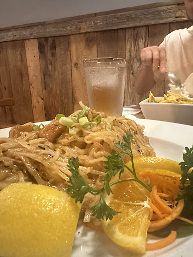 Read moreI went for lunch here on a Monday afternoon. It was my first visit here. While I was waiting, I ordered a taro boba tea. Upon first sipping the tea, it tasted good, but it had the weirdest aftertaste! I apologized and asked for a different flavor, coconut. Again, it tasted good at first, but had a weird medicinal/cleaning fluid flavored aftertaste, but I didn't ask for another one. I had the drunken noodle lunch with salad. Portion sizes were pretty good for lunch, at $12. The salad looked decent and tasted just okay. It had a fried dumpling on top, that was cold and hard. It tasted like bottled yum yum sauce on top, and it was mostly iceberg lettuce. The drunken noodle was decent and tasted pretty good, although it was much spicier than I asked for, which was level one. In my bag, there were no napkins and no silverware and no other sauces. I may visit this restaurant again, as I love Thai food, and would try something...