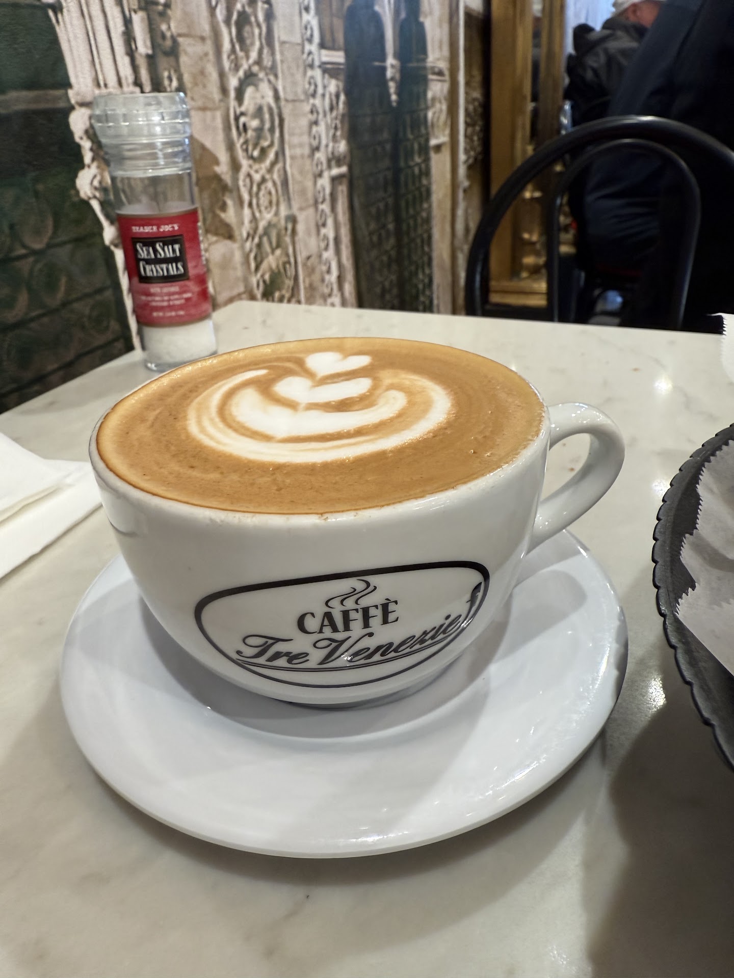 My wife had a Carmel latte and we also split a breakfast sandwich. The eggs were fluffy and the bread was sooooo good! Trust me, go here, you won't regret it. It seems everyone there was Italian and the owner moved here from Italy... Thank you for that! We were here on vacation and very glad that we found this place, even for a day.!!