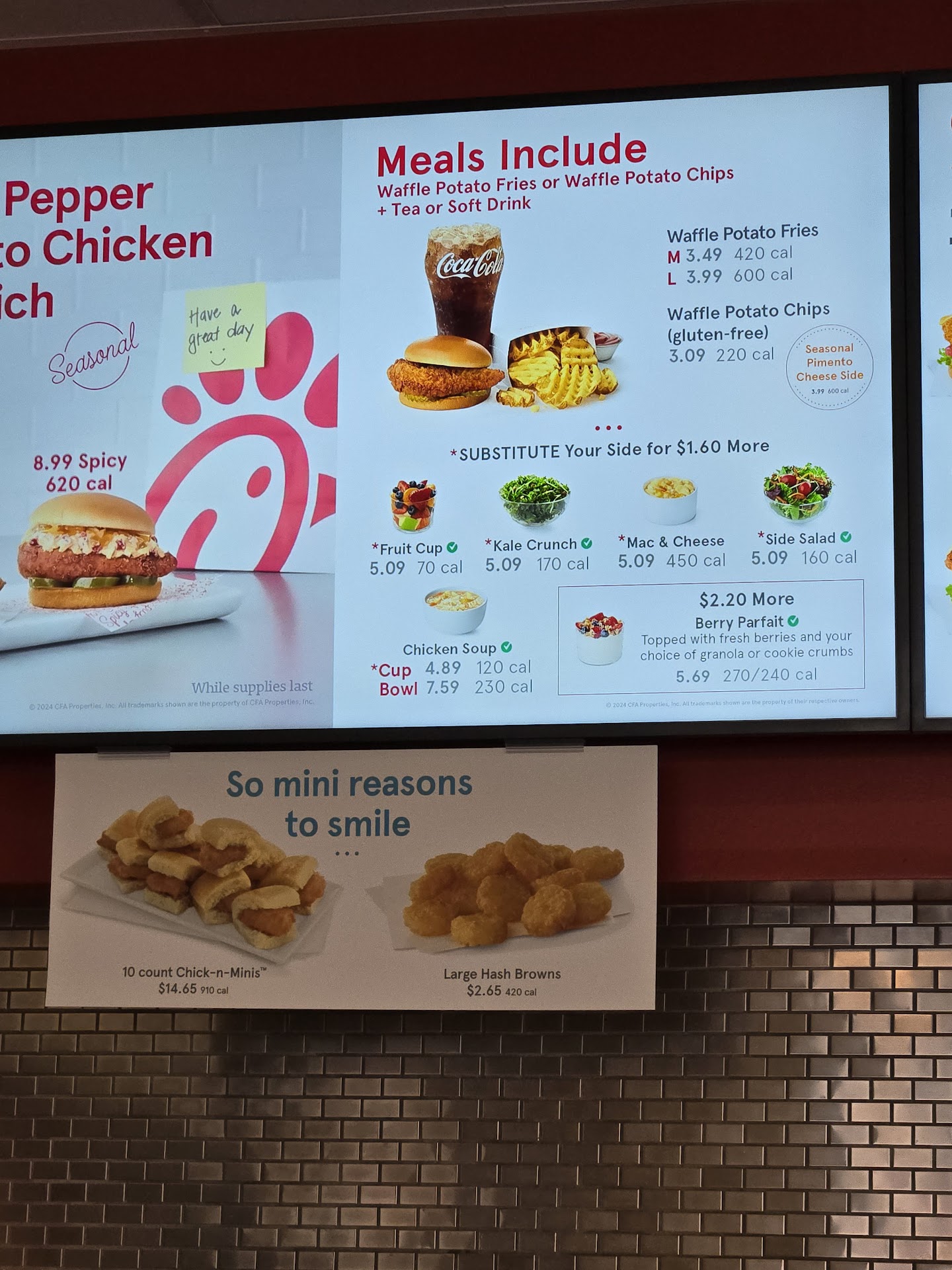 Read moreThe cashier at the time I went was very rude she looked right at me not only did she not smile she didn't welcome me she didn't say anything in the way of a greeting when taking my order. After giving her the money she put my change on the counter with my hand was clearly out for my change. Ironically I was talking to my cousin who lives out of town telling her that I love Chick-fil-A and that their service is always fantastic I cannot say that about this location I will not be back, as the owner operator, you should really be careful about the people you are letting run your investment because yours is the emptiest Chick-fil-A I have...