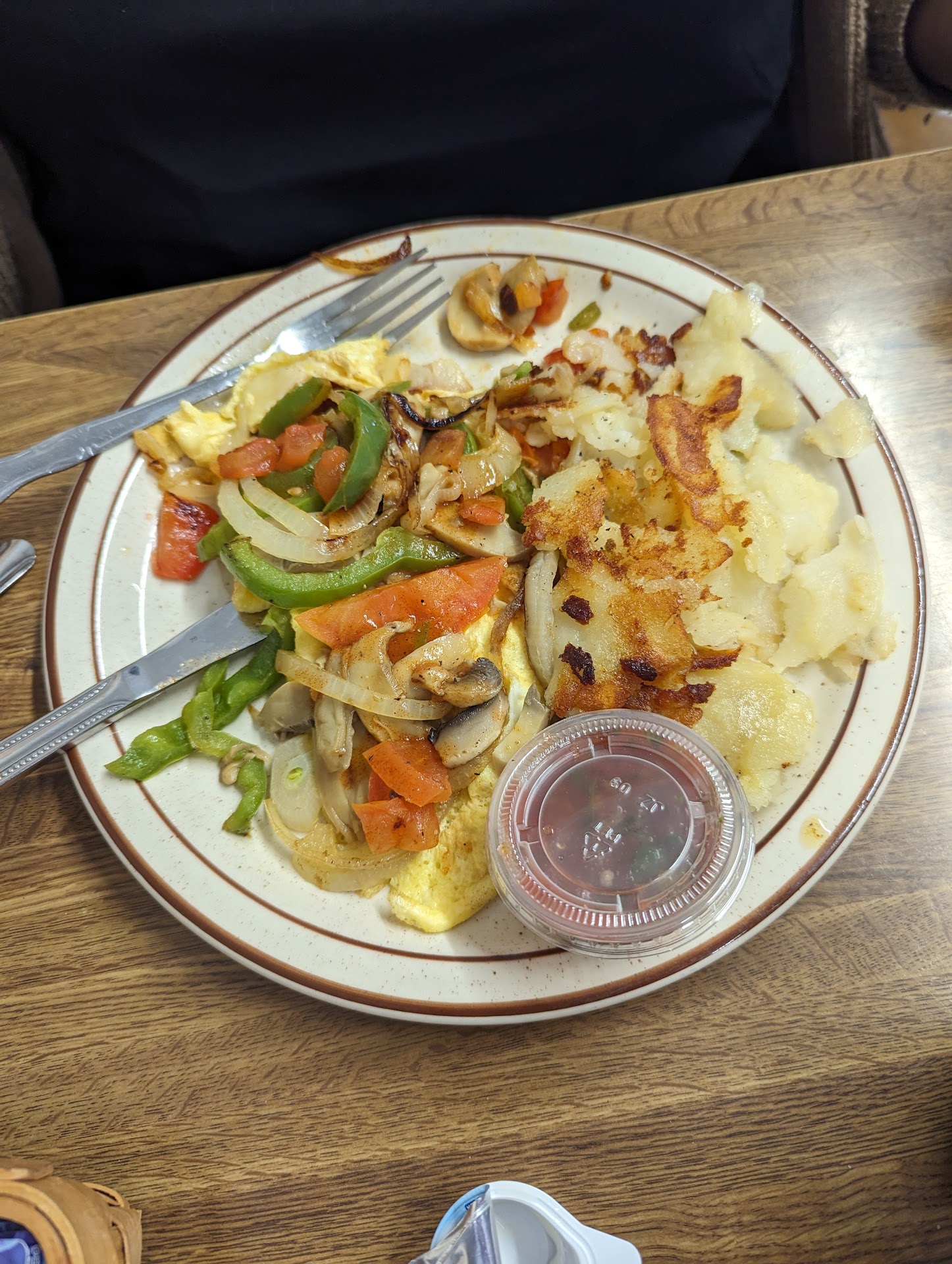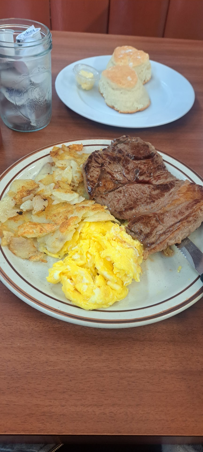 We’ve come to agree that our go to dishes are the chicken fried steak, Big #1 (pancake combo), and the southern style breakfast (sausage patties, biscuits, smothered in country style...