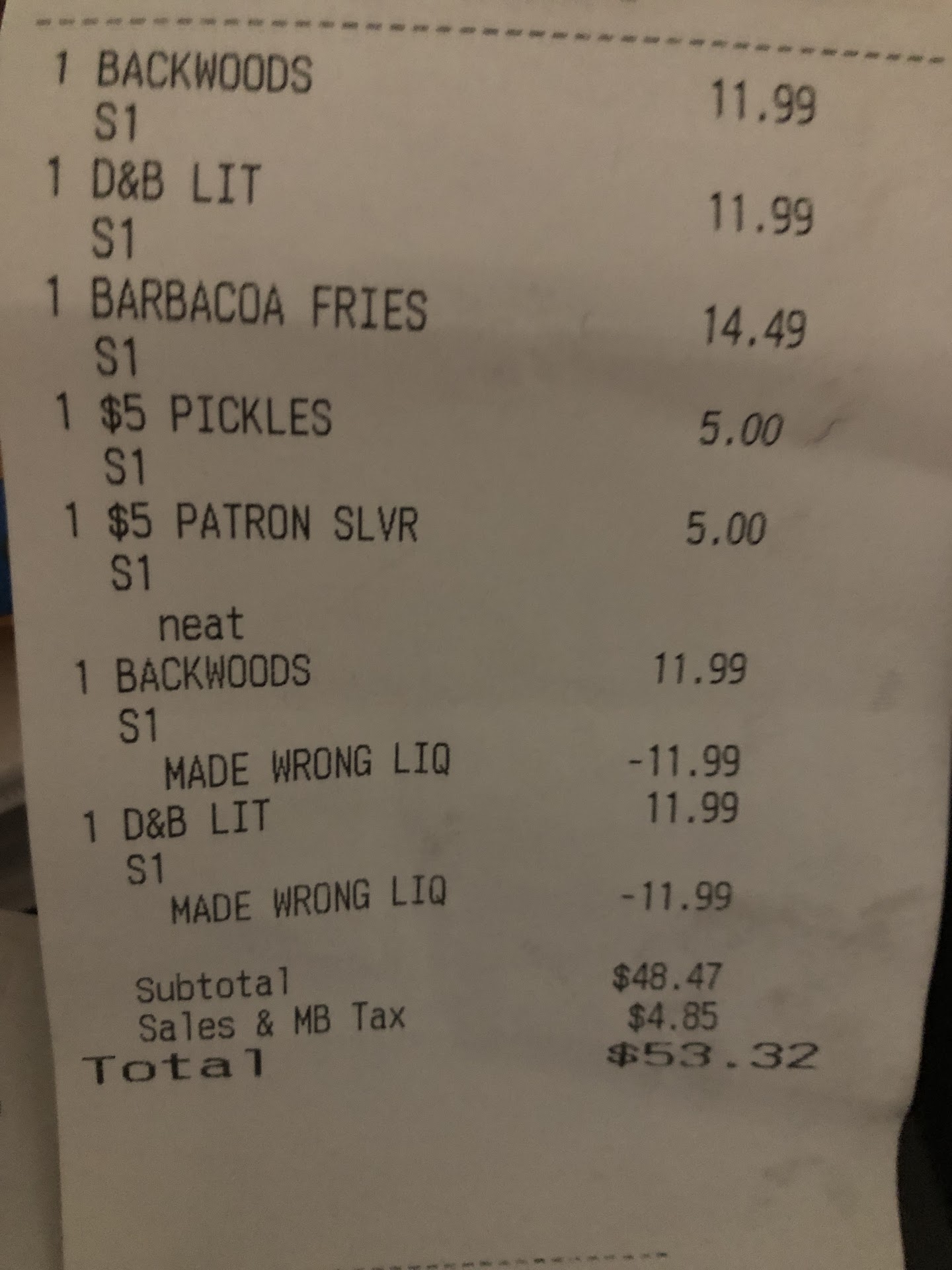 Ā Ā Ā Read moreSo I went in on 3/28/2024 for the happy hour that runs Sun -Thurs($5.00 drinks wine,backwoods blueberry,triple tequila and domestic drafts and appetizers)10 pm - closing. Well I went the day before I was getting charged 5.50 per drink. So me and my wife had ordered 2 drinks each the price was fine then we came back order three more Leaving the tab open. We came back decide to get a table to order food and more drinks but had to close out the tab due to the fact it was an open tab at the bar. So we closed it out left a tip to make it 22.00 and started a new tab our waitress was Jazmin L . We ordered 4 drinks from happy hour menu plus loaded fries and fried pickles and a shot of patron. The drinks should have been 5 dollars each pickles 5 and the patron shot 5. When she brought the tab the first time the total was $80.00 which is not bad but not if itās happy hour we brought it to her attention she replied saying she thought it was Thursday(which it was and happy hour is Thursday) so she brought the tab back for $53.32 which was still over charged and I had brought it to her attention then she said oh sorry and brought the tab back once again with a corrected amount of $48.94 I payed my tab and she had security tells us it was time to go when I asked if I could finish my drink he said no you got to go yet he allowed another couple to finish their drinks. Jazmin L and your staff thought I was Inebriated to the point where I would not notice them STEALING $30.00 + dollars from me this is unacceptable. If they tried this with me I wonder how much money they have stolen from Inebriated clients. On top of that staff was laughing when she mentioned it to them which makes me come to the conclusion that all your staff STEALS from clients at the bar. This is unacceptable to steal from clients i will attach pictures of the receipts(excluding the 80.00 tab which they took and threw away) this is unacceptable. Thieves at your establishment. Who ever goes to the bar and drinks on happy hour check your tabs you probably are getting money...