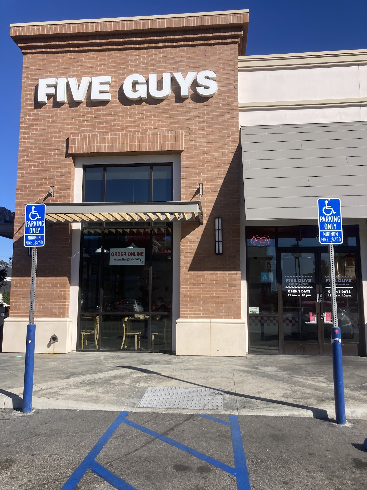 I don't eat meat not that much. Once in awhile I liked to eat good hamburger. I wanted to buy my dog a good hamburger for his reward. I decided to try "Good Guy Restaurant". My dog loves a hamburger. He is a picky eater so he only eats tasty foods. He can tell the hamburger is good hamburger. I walked inside of the restaurant. The place reminded an old-fashioned style hamburger restaurant. I looked at their menu. They have hamburger, hot dog, fries, sandwich & all kinds flavor of milkshakes. Counter person was attentive and very friendly . He took the time and explained about their menu. It was very interesting that they have menu called "Little hamburger". The size was not small, but it was smaller than regular size. I ordered grilled cheese sandwich and I ordered hamburger for my dog which was plain hamburger without a bun. They had all kinds of toppings for the hamburger. You choose your own toppings. They open 7 days weeks and they have dine-in, outdoor patio pick up & delivery services too. They had plenty of parking spaces and they had the Handy cap parking space. It is located at corner of Lomita Blvd & Hawthorne Blvd. Also they offered complimentary peanuts for the customers. I grabbed a bag of peanuts. I like their peanuts. They were tasty and not salty. Anyway, I got my order and my dog and I went outside. Grilled cheese sandwich was on a hamburger bun and it was so delicious and yummy tasty. It was the best grilled cheese. I wanted to see my dog's reaction of a hamburger. He smelled it first and he finished the hamburger in a minute. I can tell he really loved it. After he finished the hamburger, he was still licking the dish. I did not try the hamburger, but the hamburger patty looked fresh and juicy. I could tell it was made with fresh meat and not frozen meat. Five Guys restaurant 's specialty was the hamburger & I didn't try the hamburger, but I really enjoyed the grilled cheese sandwich Also my dog enjoyed the tasty hamburger. Next time, I will try their specialty hamburger. I liked their great services and complementary of peanuts. Only thing is the price of their foods are little expensive than other places, but they make all foods ,from fresh ingredients. And you can have a hamburger with your own choices of toppings and free bag of peanuts too. If you like old-fashioned hamburger or grilled cheese sandwich I will recommend this "Five Guys...