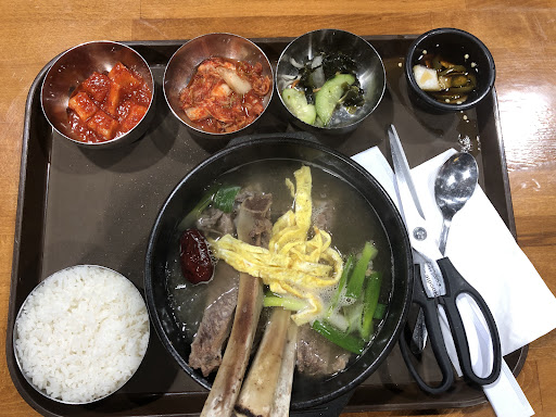 Read moreGalbi Tang (beef short rib soup) is $19.95. It seems quite expensive, but itâs a lot of food and very filling. You get two huge beef shanks in a gigantic bowl of glass noodles with broth and scrambled egg strips. It comes with a bowl of rice and 4 little side dishes. I donât like spicy stuff, so I didnât touch the jalapeĂąos, but the kimchi wasnât too spicy and actually tasted kind of nice with the rice.