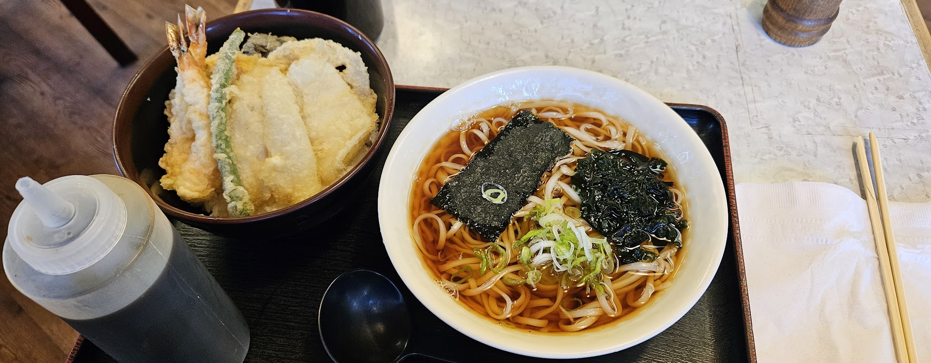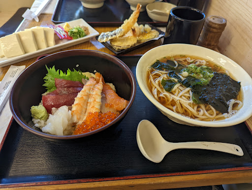 This restaurant specializes in soba and udon noodles, hot and cold. There are a lot of combo options that include sushi, tempura, sashimi, and etc. My go-to combo is hot soba noodle soup with sashimi and plain rice.