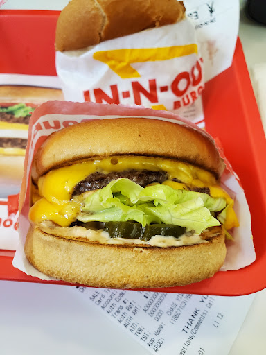 Read moreIn-n-out from an out-of-Towner: This is my second visit at this franchise. First one was in SF and I didn't like it. Thought I'd try again in SoCal. The drive thru line was very long but there was an employee outside with a menu, taking orders (like they do at chick-fil-A) from cars, to speed things along. I was shocked at how basic the menu is. No chance of standing/sitting there undecided on the many options lol. I ordered a burger, fries and shake because well, that's all they sell (unless you want a pop). The guy kept asking if I wanted onions on the burger (at least 2-3 times) and I kept saying yes. I thought maybe he has a short memory. They ask if you want the order to sit in the car. I asked "as opposed to what other option?" I mean, I'm in the drive thru. Surely I'm not gonna order thru the drive thru then go sit down and eat. He explains it's the different between getting your order in a bag, like everywhere else or in a box. LOL. That was funny. What a waste of cardboard. Ok so boom, I get the food, park to look at my order then decide to eat my fries before they get cold. The fries are basic AH. Nothing special about them. Then I decided to just eat my burger and found out why he kept asking if I wanted onions! Those onions are SPICY! Poor choice. I took them off. The burger was flat and tiny. I was left feeling unfulfilled so I grabbed the shake. It was thick, smooth and well blended. Best part of the meal! I will not be going back "in" now that I'm "out." Jack n the box is so much more tastier. For the life of me I can't understand why ppl flock to this restaurant. I'd rather...