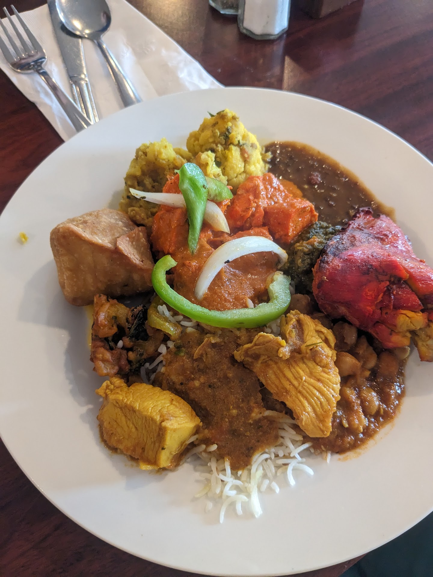 Read moreCame in during a low time, about 3pm on a Wednesday. Was greeted and sat promptly. I had just missed the lunch buffet which ended at 230, but the server was willing to still extend a lunch special. Ended up trying the chicken tikka masala, saag paneer, garlic naan, jasmine rice, and samosas. It was a ton of food for a very reasonable price.