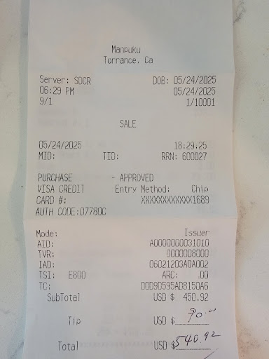Read moreVery rude service. No one told us if there is any time limit and I believe there is none for the dining time limit but they rush to clean the table just because there are people waiting outside. As soon as the table are cleaned and while we were still talking and drinking water, we were asked to leave right away. We made reservations, we ordered 4 orders of premium omakase. We left 20% tips. However we will NEVER come back to a restaurant with this kind of ghetto service.