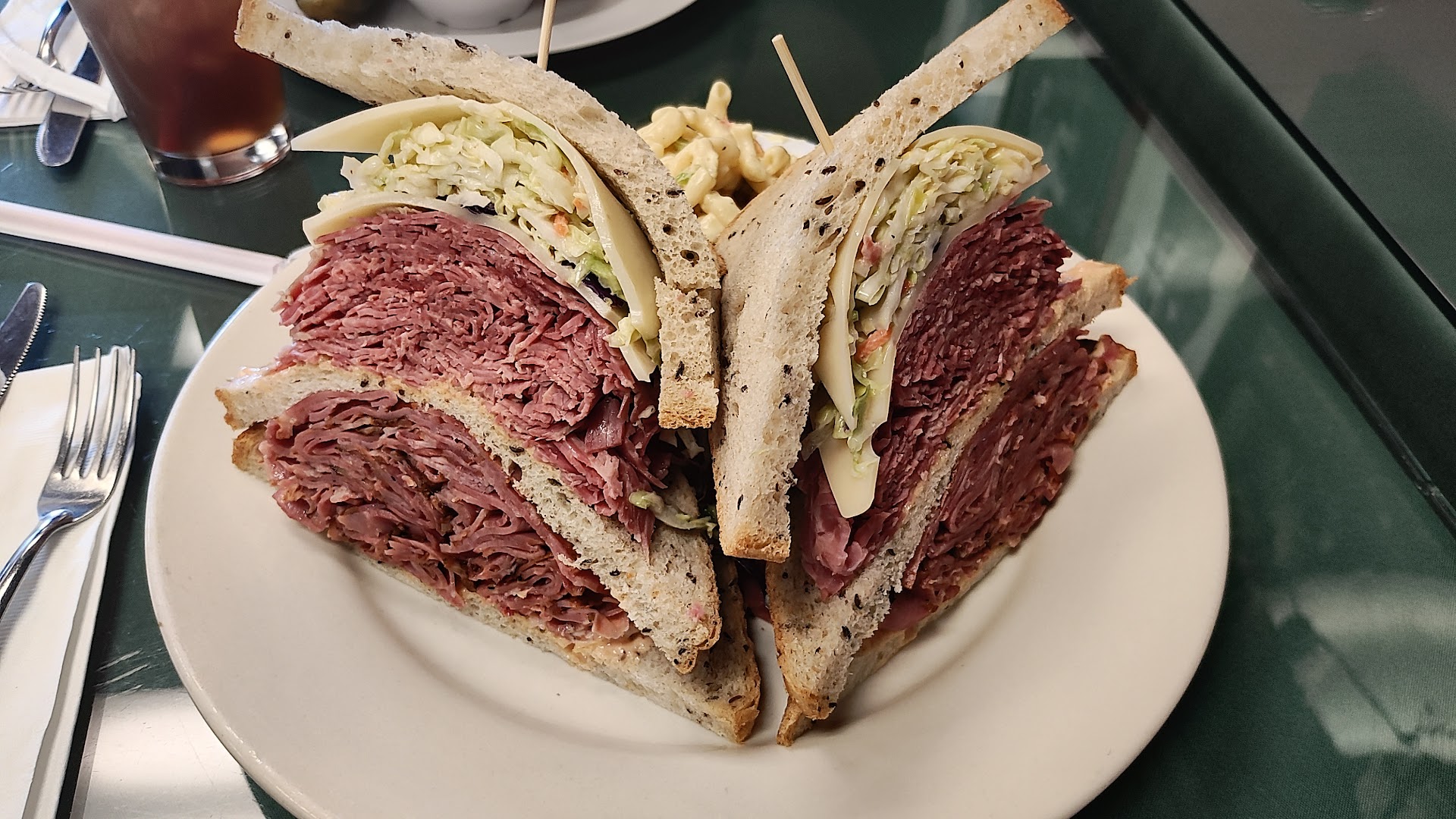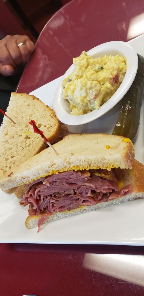 Read moreIt's been years since I've been here. It was on the regular rotation for coworkers a few years back, but I had forgotten about it until the kid mentioned it by looking it up on Yelp! I also had forgotten to write a review back then. I believe I wrote one for the smaller location which has since closed. As I remembered, still a family-friendly, homey place. It's actually quite a large restaurant and looks like it would be great for larger groups. There's plenty of space. When you first walk in, it looks like a typical deli, turn to your right and you enter a spacious restaurant. The menu offers what else, the pastrami sandwiches. French dip, burgers, triple decker sandwiches, etc. I decided to split our sandwich and I was really too full to get the Matzo ball soup which I love. The potato salad condiment was SO delish. Usually, mayo-based side condiments are just creamy with not a lot of flavor and easy to dismiss. This one truly complemented our NY style pastrami. Note: the wine list had a decent list of very fair-priced wines. Service was quick and friendly. This place is ttruly underrated. My son devoured his burger. (Sorry,no photo) We'll be back! Parking lot has enough...