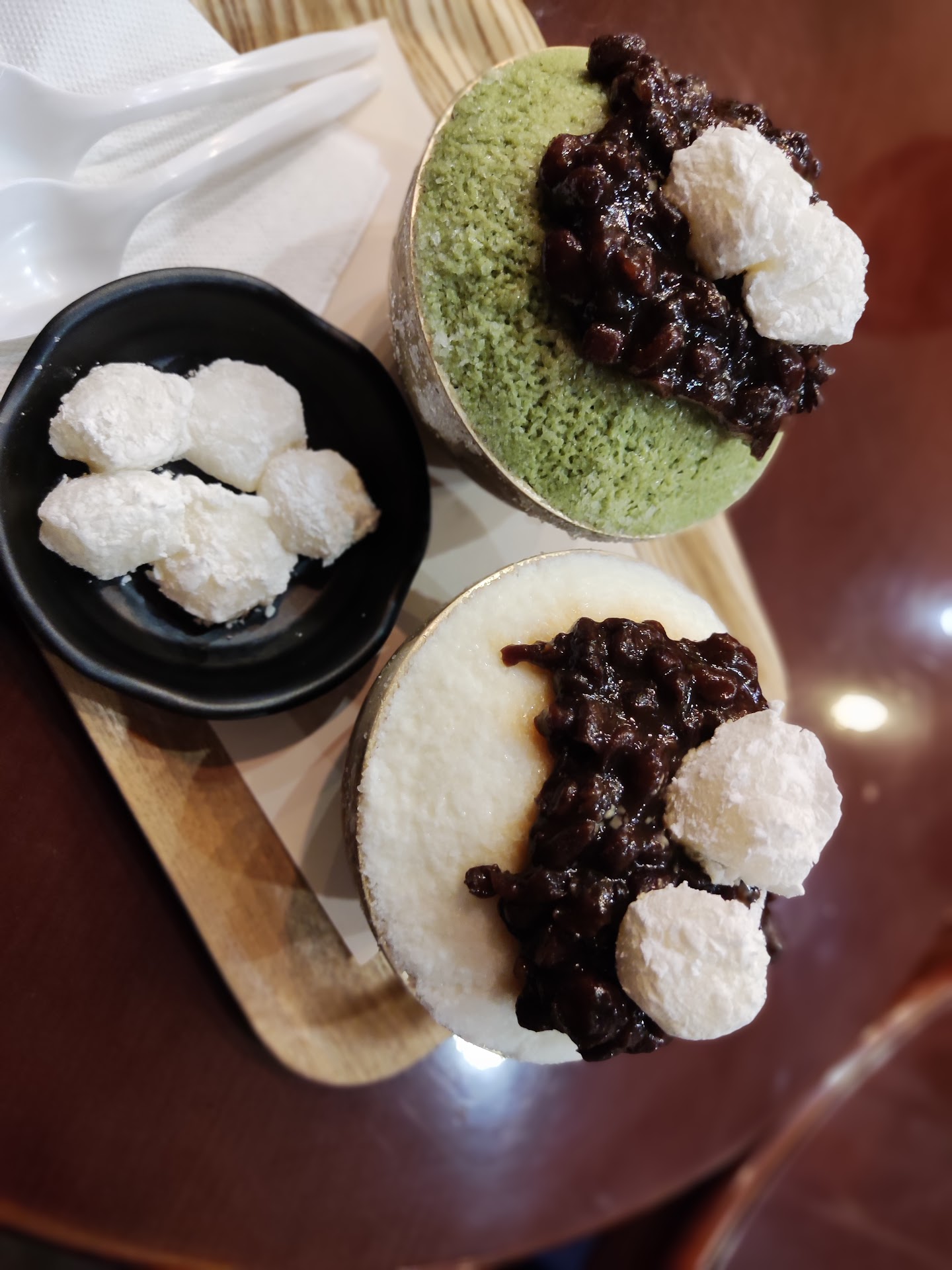Okrumong is a cozy and homey cafe. It sells many dessert and drink items such as snow bowls (my personal favorite is the matcha flavor), taiyaki, red bean porridge, and pastries, while with drinks it has another different large variety. So far I've tried the OG snow bowl, Matcha snow bowl, black sesame snow bowl, Oreo snow bowl, golden snow bowl, and blueberry mini snow bowl. I definitely cannot go through and describe all of them but I will for a select few. The OG snow bowl which is sweetened with condense milk and topped with red bean and two deliciously mochi mochis and obviously is the safest choice but I also think that it is the least tasty out of all the ones I've tried. In comparison to the golden snow bowl which has an abundance of nutty sesame flavor (I do not know if this is peanut free) and honey like sweetness which is an amazing melody for the snow bowls. My personal favorite would be the matcha, the condensed matcha flavor topped on the snow bowl makes the absolute smoothest mouth feel and perfect taste for matcha lovers. If you don't like red bean you could always ask for it to not be added or put on the side, but please do try the mochi as it is a chewy...
