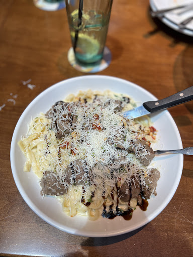 Foods: I ordered the Steak Gorgonzola Alfredo. I ordered the steak cooked rare because supply chains always overcook red meat. The steak was okay. As expected, the steak was overcooked lol. The Alfredo pasta was good and tasted as expected. The salad and breadsticks were the best part, of course. I also jokingly asked for more mint chocolates because they're my favorite, and our servers actually gave me a whole mug of mint chocolates haha.