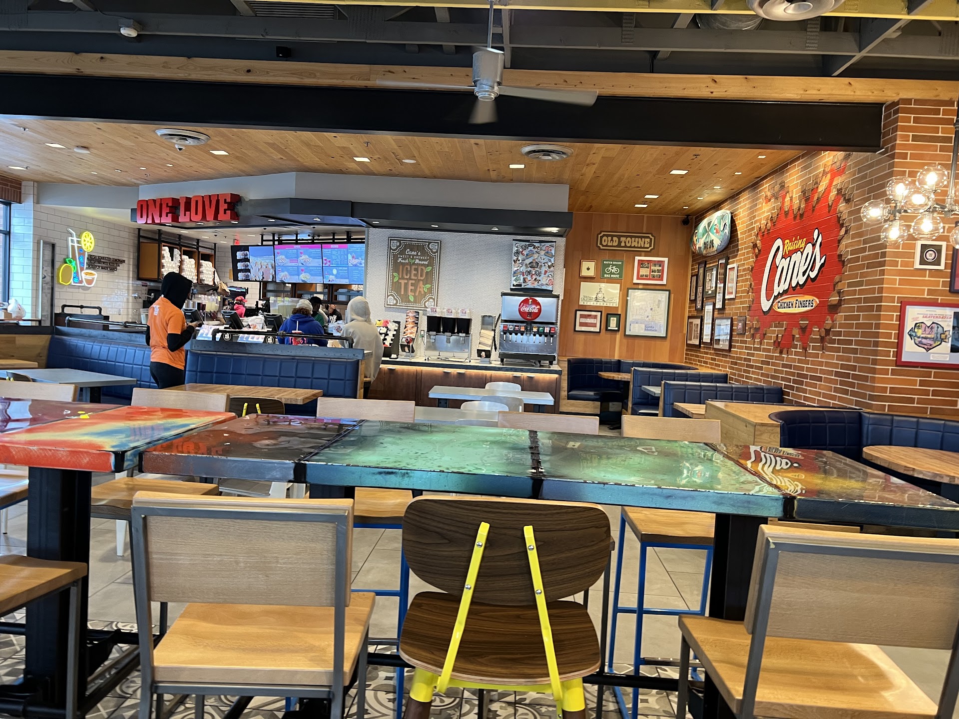 Where to begin. Out of the 4 locations I've visited this is by far and away the worst. Drive thru is complete chaos, most customers are usually waiting minutes after they pay for their order. As for my own experience with the drive thru most of the employees are incredibly distracted and can't make simple substitutions even when they're repeated back correctly. At least six of my ten orders in the last two months have been wrong from drive thru alone. Actual meal: Caniac combo lemonade no ice, (usually contains ice) Chicken Tenders are usually tiny two-three bite pieces average. Still delicious. Substitutions are usually missed. Mobile order is absolutely disregarded, and half the time I'm just standing around inside the location for ten-fifteen minutes, irregardless of the drive thru length. Employees are combative when errors are pointed out, literally right now they asked us to pull up and when we pointed out that they hadn't returned our card yet, the employee just turned her back to us gave us back the card without saying a word, asked us to pull forward again. Then shoved two bags of food in the open car window without saying a word to us. Absolutely awful customer service, chicken is good, sauce is amazing, toast and lemonade, exactly the way they should taste. Unfortunately, the rude barely present employees seriously make this an awful experience 4...