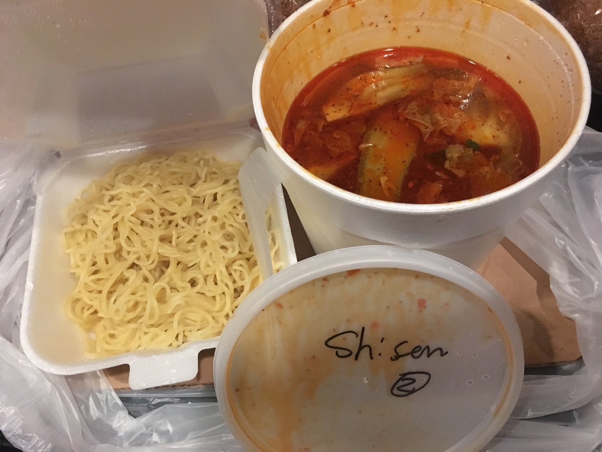 She goes ok we remake it all, I’m like it’s better for your food cost to give me the broth I don’t need the rest really…lol she ignored me told me twenty minutesss… After twenty minutes I return and she makes me wait with the order in my face again while she does small table touches Lolol Im Like Jesús help her… so she comes back to start bagging my food, I politely requested that she separated the bag this time… man she caught the biggest attitude again and in front of guest told me to package it myself.. I was beyond shock almost started to take it personal lol so I said ok and began to and she starts making side comments I said please thank you I can do it… and whats your name?