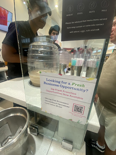I make my way to the Sip Fresh corner, thereās a bit of a line, so I go and wait. I did recall that the employees were friendly and engaging; it was definitely making a good first impression on me!