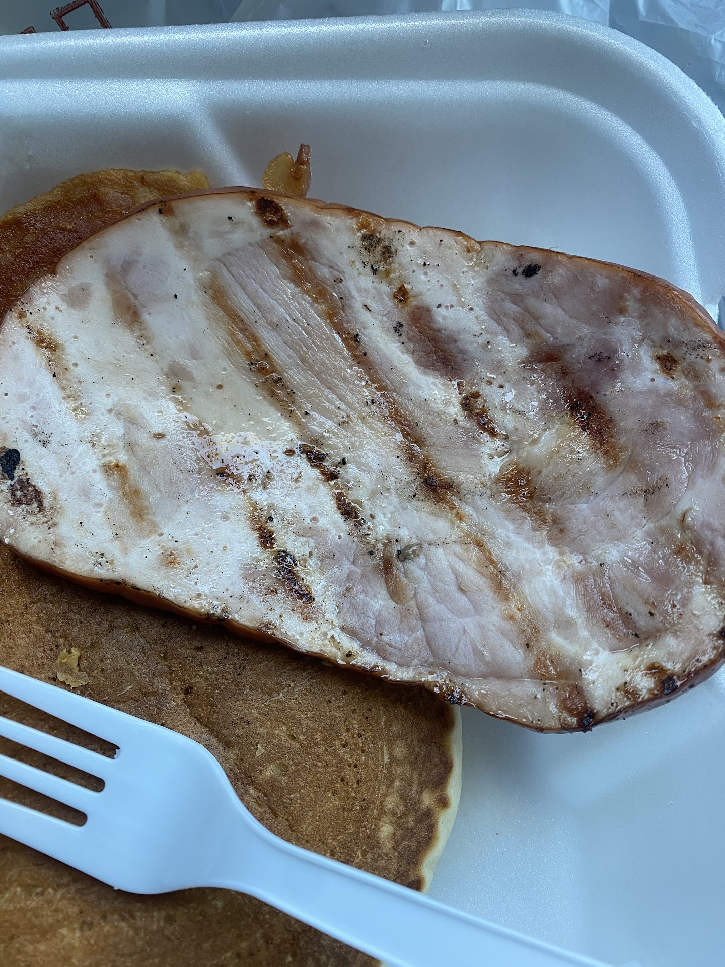 The breakfast was bland, pancakes were served without butter on the side and it wasn't available at the counter either. It has pretty much become self served taking what you need when picking up your order.