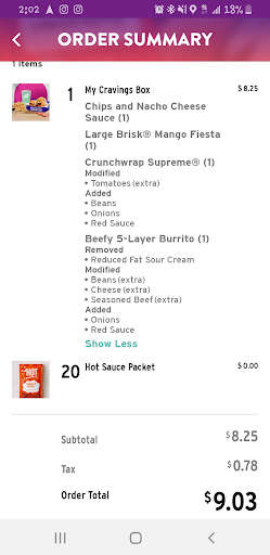 Read moreMeh. The bean and cheese burrito was really tasty, although it was a little on the skinny side. That was fine when they charged a dollar or less, but now with the new menu pricing they should step up the thickness. The nachos supreme is no longer an item, so they have the nachos bell grande which costs more, however at least 30 percent of the chips weren't touched by any cheese sauce or anything else. It could've been repackaged was a small chips. That's exactly why I never ordered the nachos bell grande. Only the nacho supreme. All killer, no filler. Oh well, 2 small drinks, two nachos bell grande, and two bean and cheese burritos for $20. The nachos were bland, but the burritos had the classic taco bell burrito taste that I came for. This was my first time eating taco bell in almost a year, so my palette was clean going in. Maybe the cheese sauce wasn't as spicy as it used to be? The employees need to serve proper portions. Make every item like it was for themselves. Can't get numb and start clock watching. Oh, some guy in the drive thru got out of the car and was peeing in the bushes at 11:30am in the parking lot. I've seen worse, but still...
