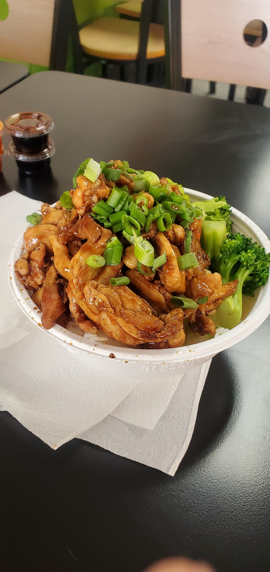 This establishment thrives off of quality and taste. It's unfortunate I didn't find it, after I ordered the tofu veggie bowl... however, The Clean environment and promptness of the service here is exceptional. The dining area is small and can feel a bit cramped to most however it's well-kept. The same can be said about the outside, plenty of parking on both sides of the shop. *getting into the parking lot from both streets is practical. The food taste is questionable: as per to the tofu and veggies bowl, the veggies and Tofu...they need to be more *flame broiled for a much better taste and the vegetables are steamed I don't like steam vegetables and I hope you do... they would taste better if they were stirfried with a touch of sesame seed oil and hint of garlic...this would make an exception dish for vegetarians. As far as the Tofu goes, it needs to be more flame broiled to a crisp if need be for a more robust taste, right now it tastes soft and mushy and not very palatable. Still though overall it was a great experience, staff members are well behaved and...