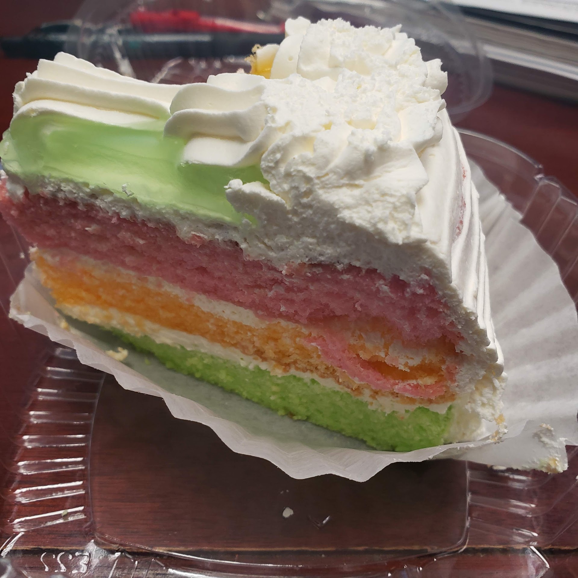 Paradise cake Probably King's Hawaiian's most popular bakery item, save for the Hawaiian bread, the paradise cake is, indeed, a trip to paradise. Chiffon cake, composed of a layer of guava, a layer of passonfruit & a layer of lime, topped with whipped cream & guava/passionfruit/lime glaze, the paradise cake is almost ethereal in it's consistency. If left to my own, I could finish a whole sheet of this wonderful dessert treat.