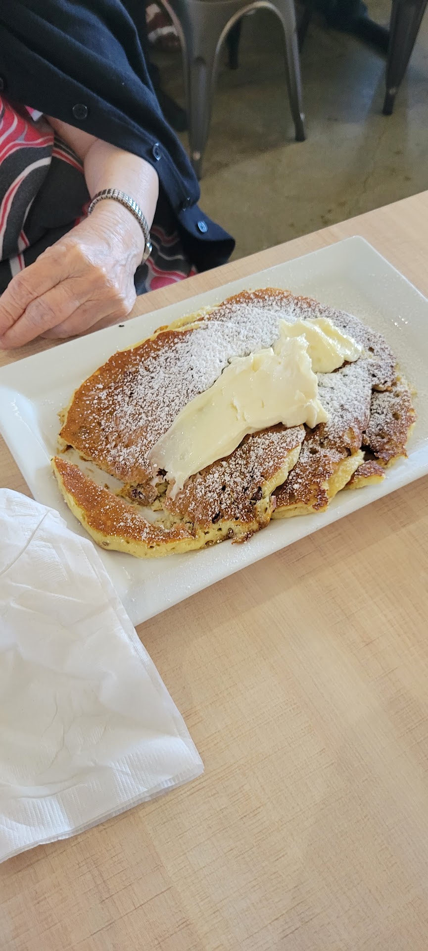 I got the Pita Chiliqualies. I thought this would be a good choice, but it was pretty bland. My sister got a veggie omelet, also bland. Mother-in-law got the cubano egg roll pancakes. She said it was good, but very sweet.